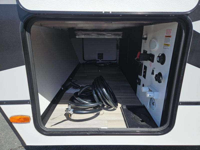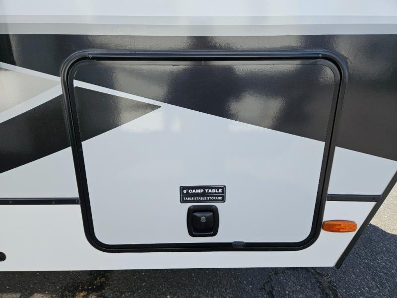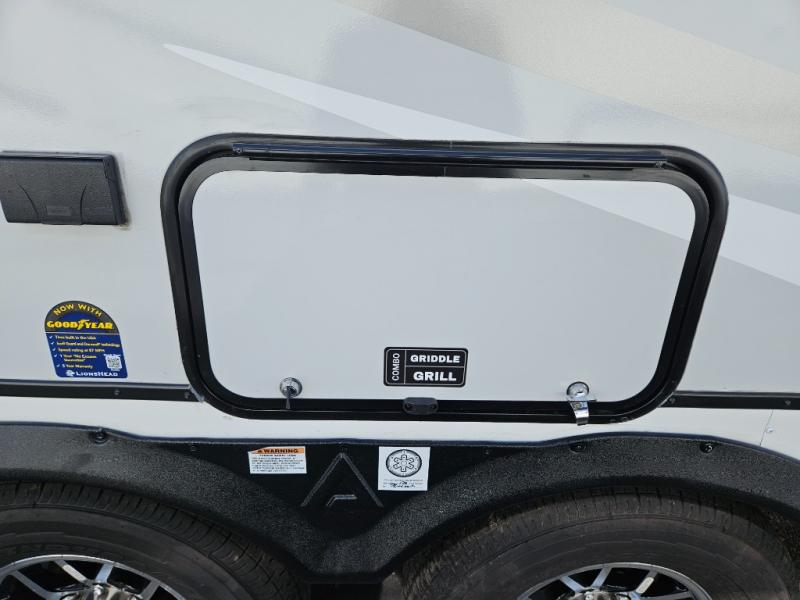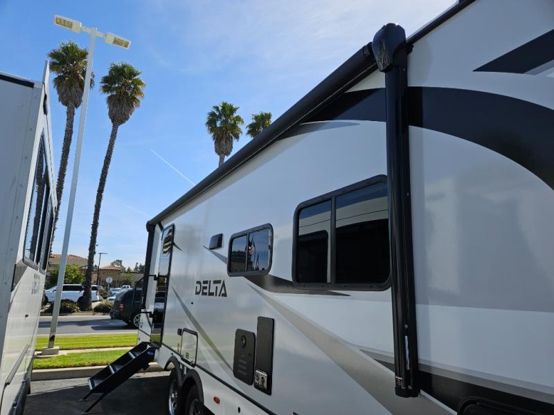 You will love all of your adventures with this Delta travel trailer in tow! This unit is perfect for a couple or even a family of four or six with a queen bed in the front private bedroom, and also using the sofa and U-shaped dinette once converted for more sleeping space. The U-shaped dinette is great for gathering for meals, a board game or game of cards, and the sofa is directly opposite a 40" HDTV which makes viewing enjoyable. You can easily prepare all of your favorite meals and snacks with the kitchen amenities provided inside. A three burner range allows you to easily cook indoors, or you can cook outside using the outdoor griddle/grill if you like. There is a 10 cu. ft. 12V refrigerator to keep all of your perishables and drinks nice and cold, plus a large sink for dishes and cleaning up, and a convenient pull-out trash can and flip-up counter extension as well. You will also appreciate the full rear bath featuring a 30" x 36" shower, toilet, vanity with sink, and linen cabinet for your towels and toiletries.