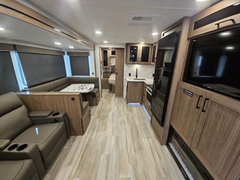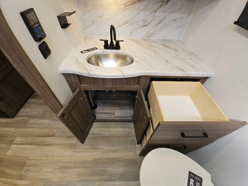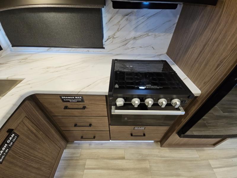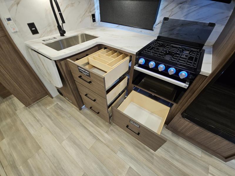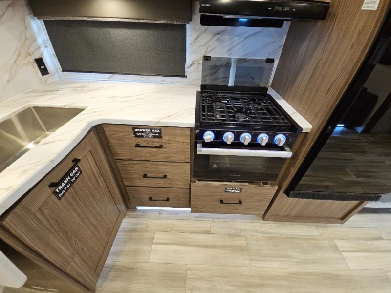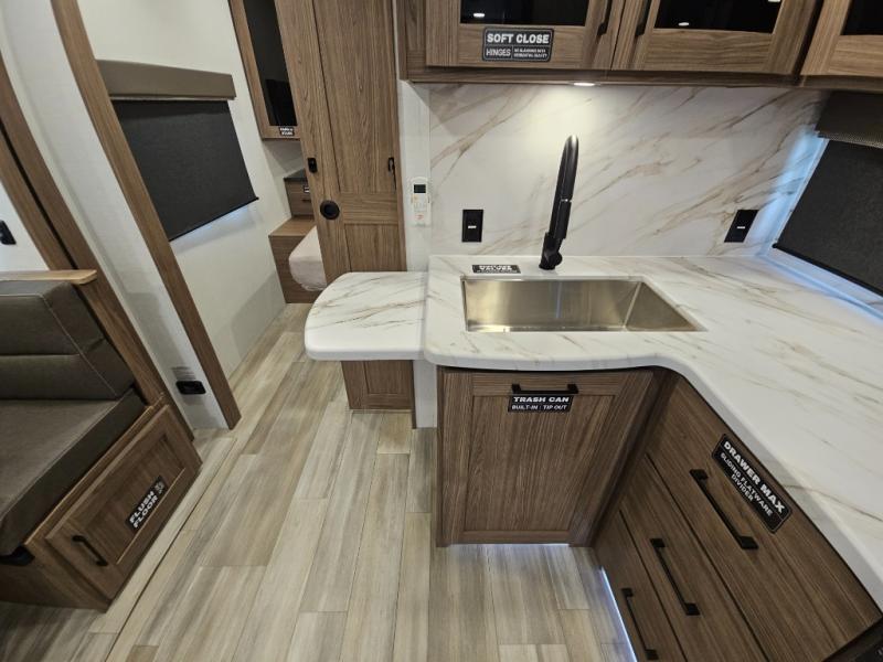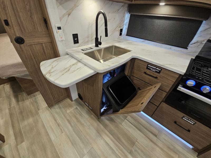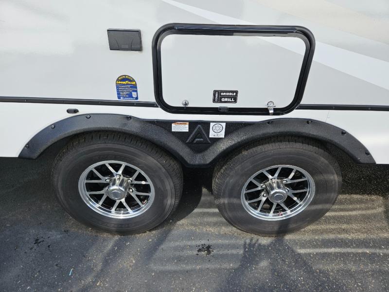 Form and function works together with every one of these Alliance RV Delta travel trailers! They are built with a walk-on roof with a seamless PVC roof covering, Mylar reinforced exterior seals, and a heated and enclosed underbelly to protect your unit in all seasons. The commercial grade vinyl flooring will be easy to clean and the oversized atrium windows throughout let in plenty of natural sunlight. With 62 cu. ft. of drop frame pass-through storage, you can bring along all of your essential camping gear plus it has USB charging for more convenience. There are many at home interior conveniences including a Bluetooth speaker, USB charging throughout, and even a pull-out kitchen trash can. Come find your favorite model today!
