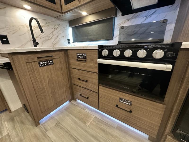 Form and function works together with every one of these Alliance RV Delta travel trailers! They are built with a walk-on roof with a seamless PVC roof covering, Mylar reinforced exterior seals, and a heated and enclosed underbelly to protect your unit in all seasons. The commercial grade vinyl flooring will be easy to clean and the oversized atrium windows throughout let in plenty of natural sunlight. With 62 cu. ft. of drop frame pass-through storage, you can bring along all of your essential camping gear plus it has USB charging for more convenience. There are many at home interior conveniences including a Bluetooth speaker, USB charging throughout, and even a pull-out kitchen trash can. Come find your favorite model today!