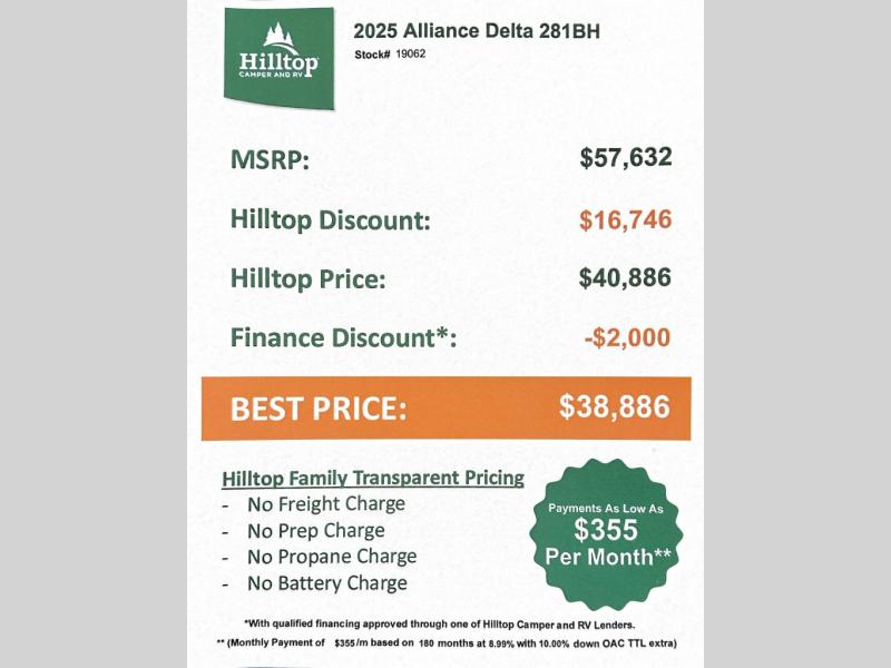 New 2025 Alliance RV Delta 281BH Travel Trailer