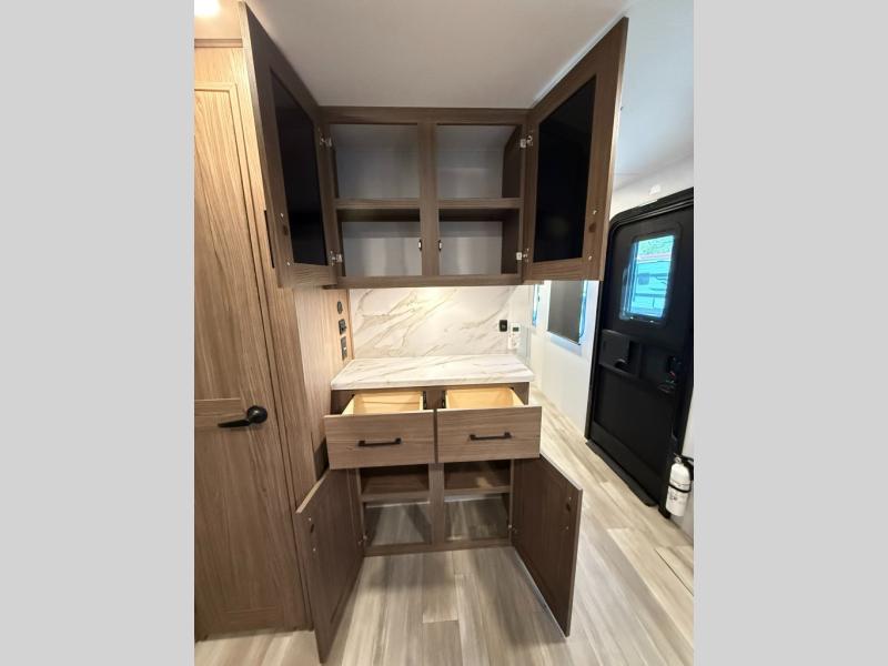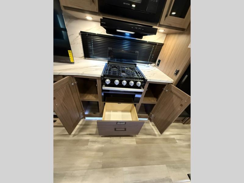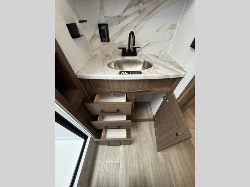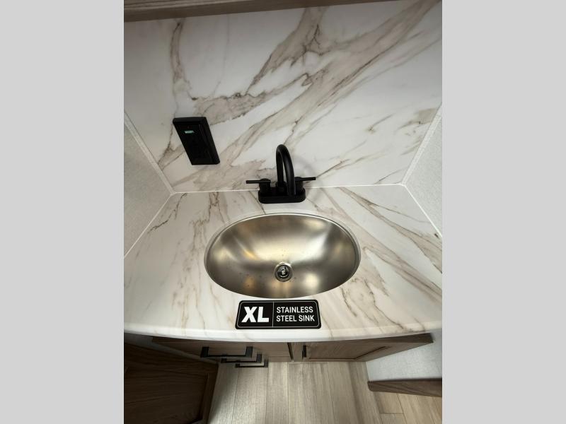 Form and function works together with every one of these Alliance RV Delta travel trailers! They are built with a walk-on roof with a seamless PVC roof covering, Mylar reinforced exterior seals, and a heated and enclosed underbelly to protect your unit in all seasons. The commercial grade vinyl flooring will be easy to clean and the oversized atrium windows throughout let in plenty of natural sunlight. With 62 cu. ft. of drop frame pass-through storage, you can bring along all of your essential camping gear plus it has USB charging for more convenience. There are many at home interior conveniences including a Bluetooth speaker, USB charging throughout, and even a pull-out kitchen trash can. Come find your favorite model today!