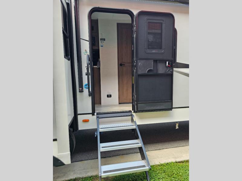 2 A/C's, 50 Amp Service, Solar, Solid Steps, Oversized Exterior Ladder w/Built in Towel Rack.