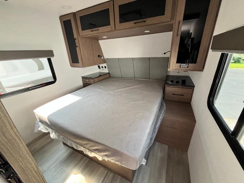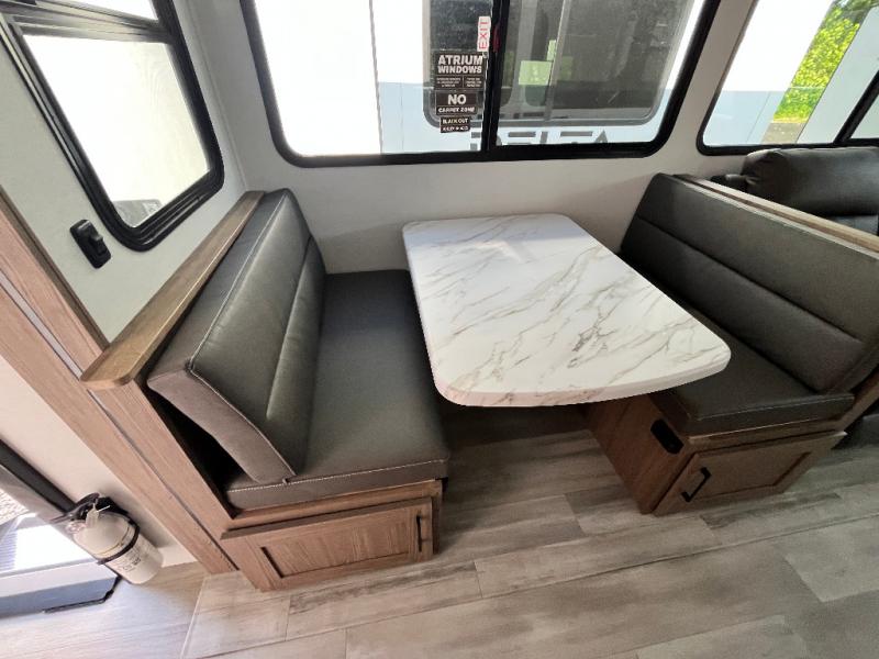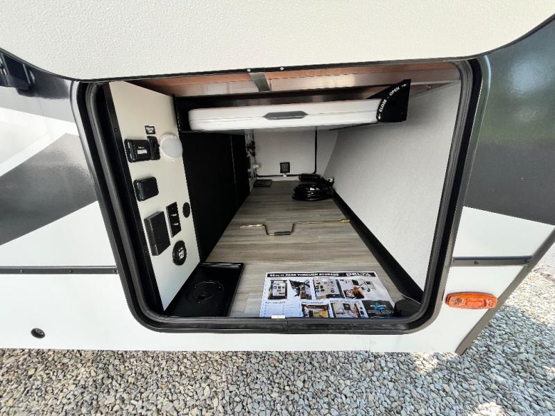 Form and function works together with every one of these Alliance RV Delta travel trailers! They are built with a walk-on roof with a seamless PVC roof covering, Mylar reinforced exterior seals, and a heated and enclosed underbelly to protect your unit in all seasons. The commercial grade vinyl flooring will be easy to clean and the oversized atrium windows throughout let in plenty of natural sunlight. With 62 cu. ft. of drop frame pass-through storage, you can bring along all of your essential camping gear plus it has USB charging for more convenience. There are many at home interior conveniences including a Bluetooth speaker, USB charging throughout, and even a pull-out kitchen trash can. Come find your favorite model today!
