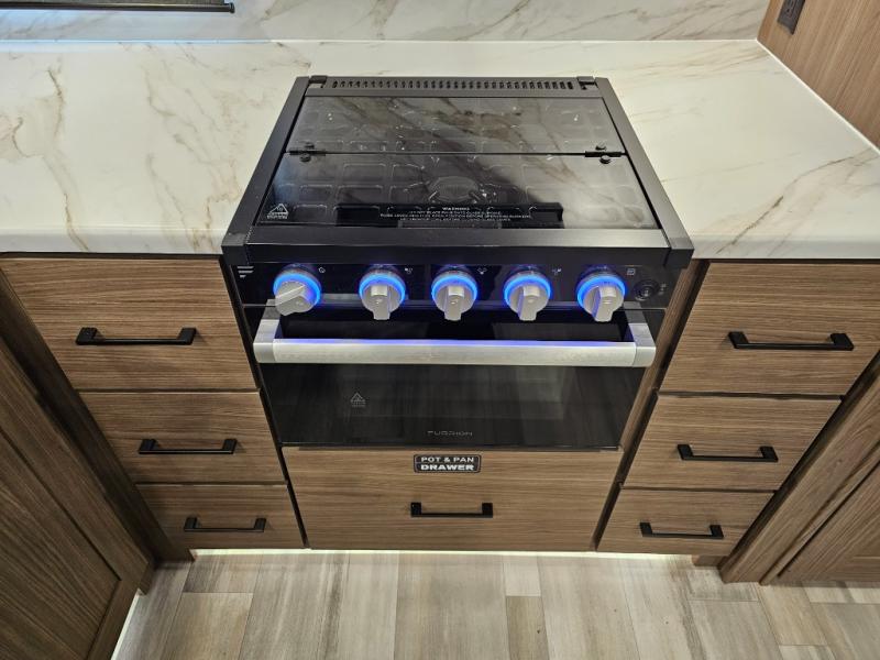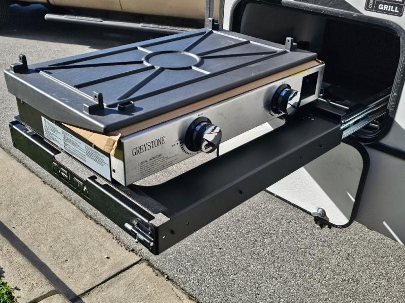 Three-burner cooktop and 10 cu. ft. 12V refrigerator