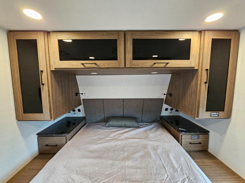 Private front bedroom with a queen bed and dual wardrobe nightstands