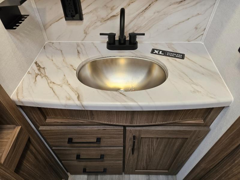The Alliance RV Delta 294RK is a rear kitchen luxury travel trailer designed for couples or families who want the perfect balance of comfort, convenience, and premium features. With an open living space, well-equipped kitchen, and thoughtful storage, this model makes every getaway unforgettable.