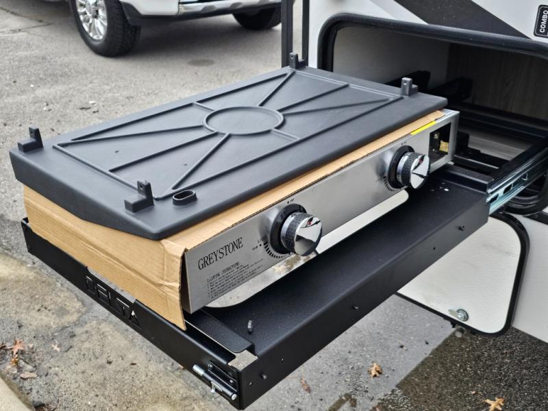 - Three-burner cooktop and 10 cu. ft. 12V refrigerator
