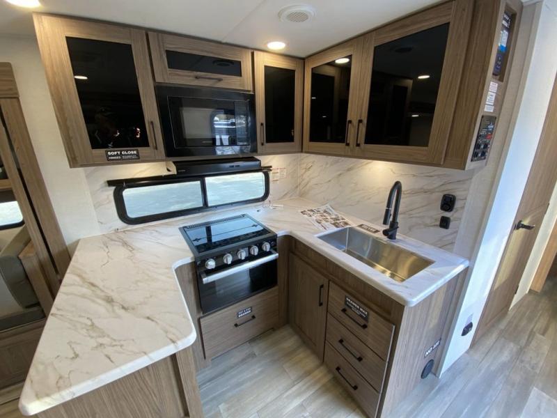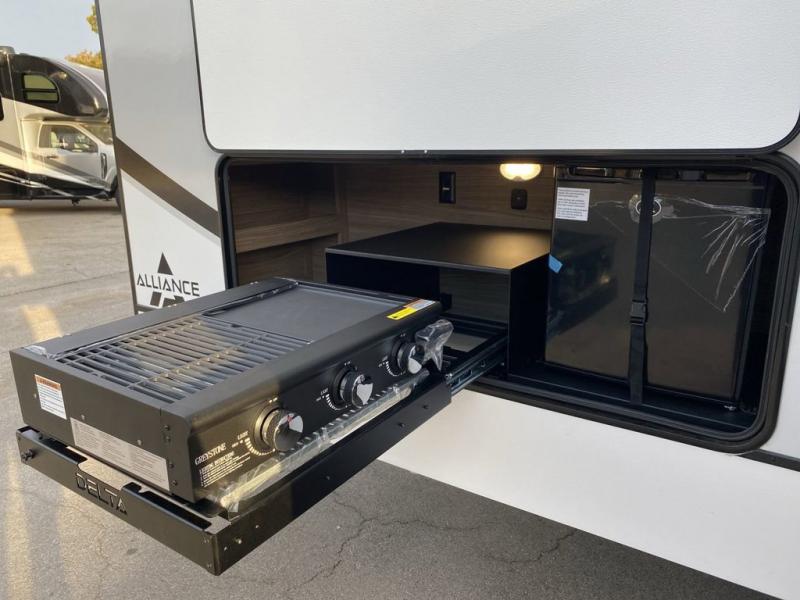 Form and function works together with every one of these Alliance RV Delta travel trailers! They are built with a walk-on roof with a seamless PVC roof covering, Mylar reinforced exterior seals, and a heated and enclosed underbelly to protect your unit in all seasons. The commercial grade vinyl flooring will be easy to clean and the oversized atrium windows throughout let in plenty of natural sunlight. With 62 cu. ft. of drop frame pass-through storage, you can bring along all of your essential camping gear plus it has USB charging for more convenience. There are many at home interior conveniences including a Bluetooth speaker, USB charging throughout, and even a pull-out kitchen trash can. Come find your favorite model today!