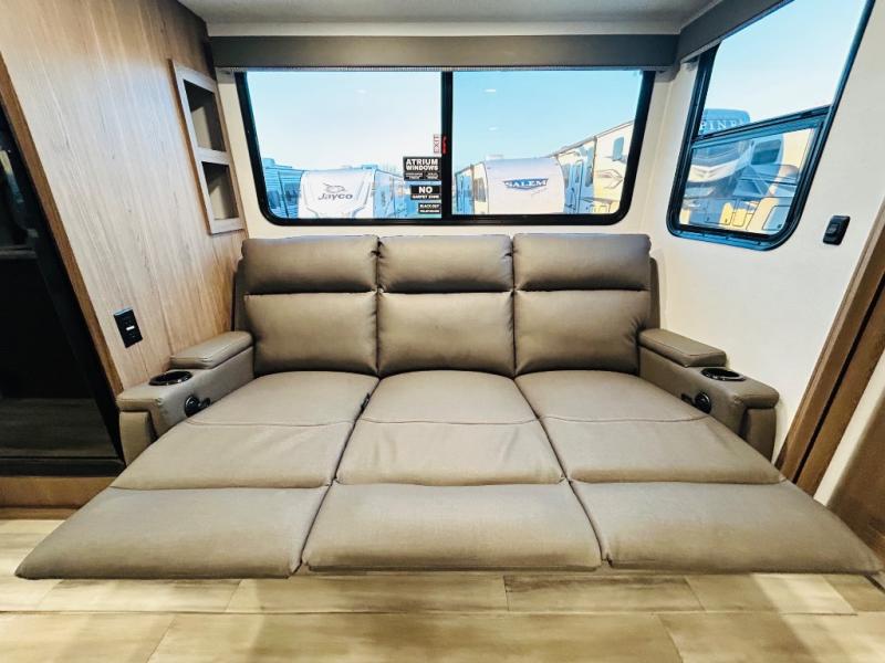 Form and function works together with every one of these Alliance RV Delta travel trailers! They are built with a walk-on roof with a seamless PVC roof covering, Mylar reinforced exterior seals, and a heated and enclosed underbelly to protect your unit in all seasons. The commercial grade vinyl flooring will be easy to clean and the oversized atrium windows throughout let in plenty of natural sunlight. With 62 cu. ft. of drop frame pass-through storage, you can bring along all of your essential camping gear plus it has USB charging for more convenience. There are many at home interior conveniences including a Bluetooth speaker, USB charging throughout, and even a pull-out kitchen trash can. Come find your favorite model today!