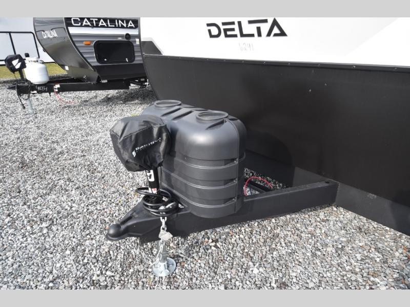 Form and function works together with every one of these Alliance RV Delta travel trailers! They are built with a walk-on roof with a seamless PVC roof covering, Mylar reinforced exterior seals, and a heated and enclosed underbelly to protect your unit in all seasons. The commercial grade vinyl flooring will be easy to clean and the oversized atrium windows throughout let in plenty of natural sunlight. With 62 cu. ft. of drop frame pass-through storage, you can bring along all of your essential camping gear plus it has USB charging for more convenience. There are many at home interior conveniences including a Bluetooth speaker, USB charging throughout, and even a pull-out kitchen trash can. Come find your favorite model today!