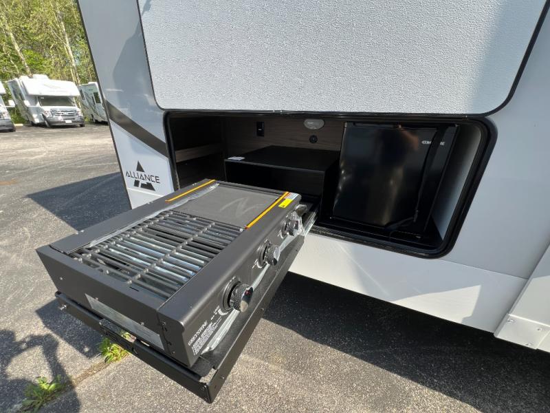 Form and function works together with every one of these Alliance RV Delta travel trailers! They are built with a walk-on roof with a seamless PVC roof covering, Mylar reinforced exterior seals, and a heated and enclosed underbelly to protect your unit in all seasons. The commercial grade vinyl flooring will be easy to clean and the oversized atrium windows throughout let in plenty of natural sunlight. With 62 cu. ft. of drop frame pass-through storage, you can bring along all of your essential camping gear plus it has USB charging for more convenience. There are many at home interior conveniences including a Bluetooth speaker, USB charging throughout, and even a pull-out kitchen trash can. Come find your favorite model today!