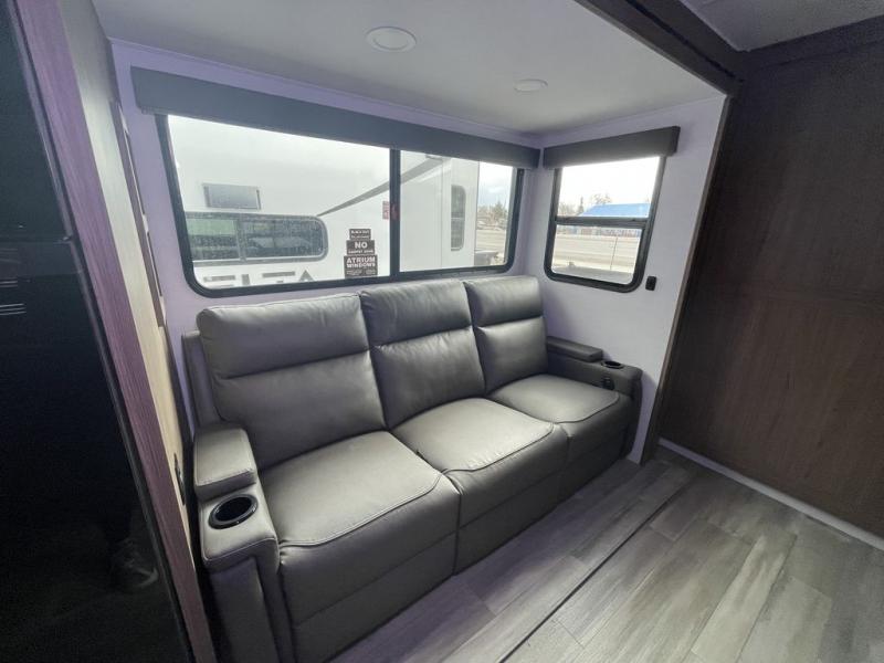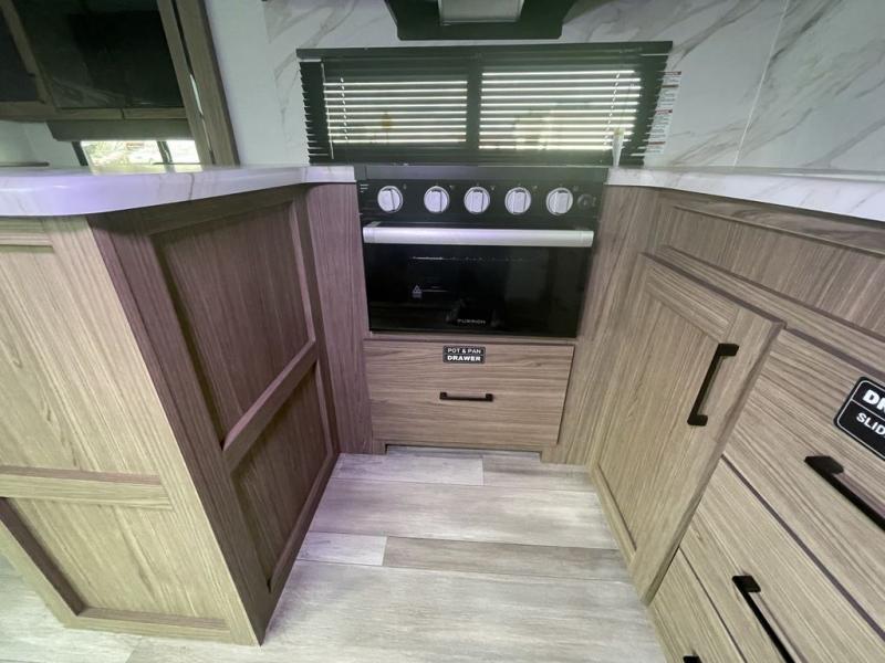 Form and function works together with every one of these Alliance RV Delta travel trailers! They are built with a walk-on roof with a seamless PVC roof covering, Mylar reinforced exterior seals, and a heated and enclosed underbelly to protect your unit in all seasons. The commercial grade vinyl flooring will be easy to clean and the oversized atrium windows throughout let in plenty of natural sunlight. With 62 cu. ft. of drop frame pass-through storage, you can bring along all of your essential camping gear plus it has USB charging for more convenience. There are many at home interior conveniences including a Bluetooth speaker, USB charging throughout, and even a pull-out kitchen trash can. Come find your favorite model today!