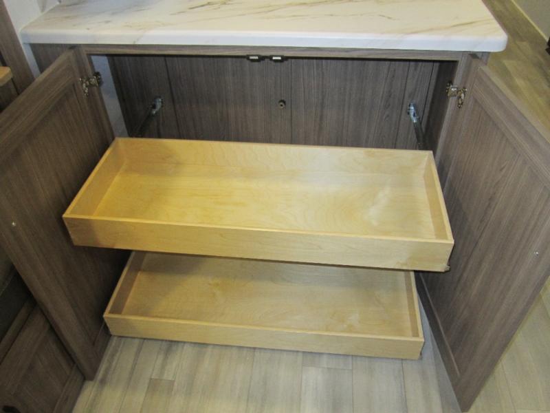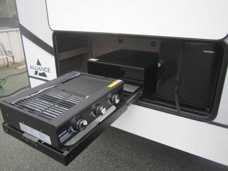 Form and function works together with every one of these Alliance RV Delta travel trailers! They are built with a walk-on roof with a seamless PVC roof covering, Mylar reinforced exterior seals, and a heated and enclosed underbelly to protect your unit in all seasons. The commercial grade vinyl flooring will be easy to clean and the oversized atrium windows throughout let in plenty of natural sunlight. With 62 cu. ft. of drop frame pass-through storage, you can bring along all of your essential camping gear plus it has USB charging for more convenience. There are many at home interior conveniences including a Bluetooth speaker, USB charging throughout, and even a pull-out kitchen trash can. Come find your favorite model today!