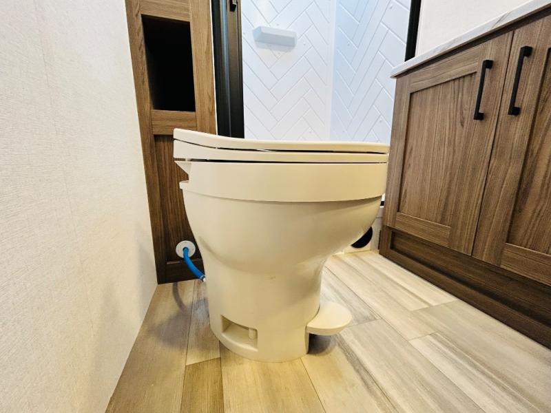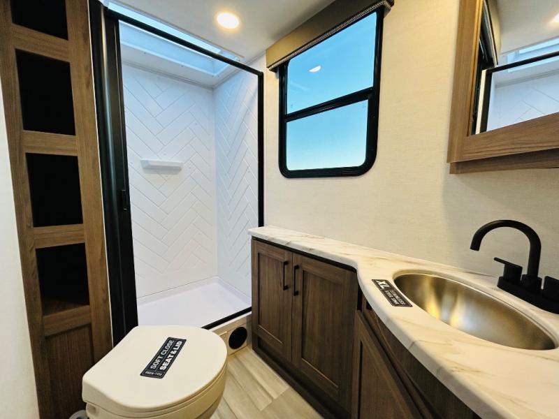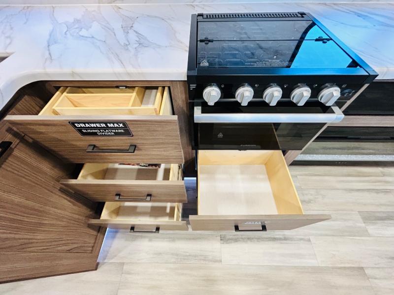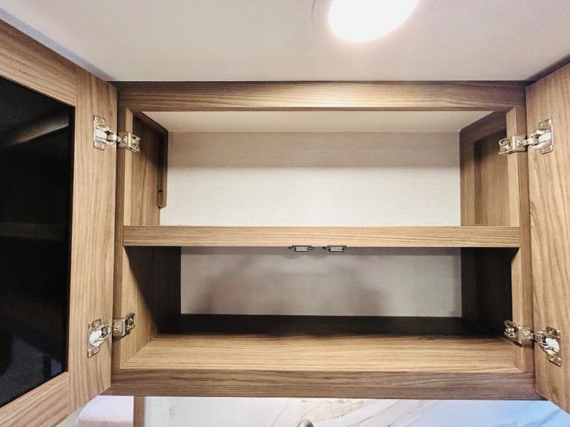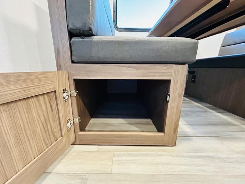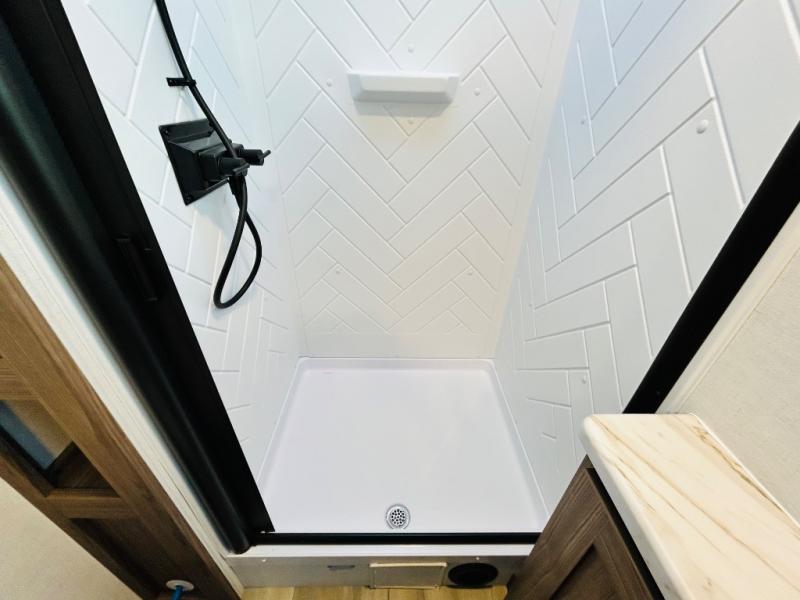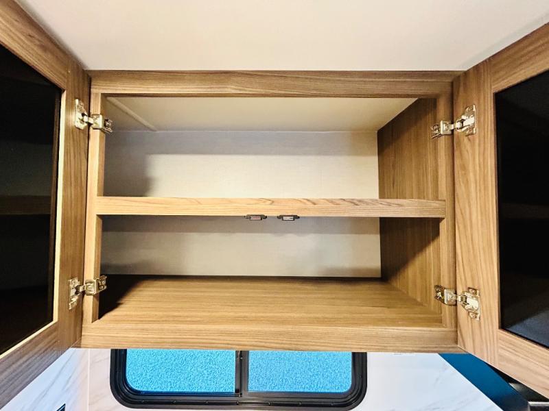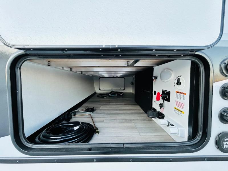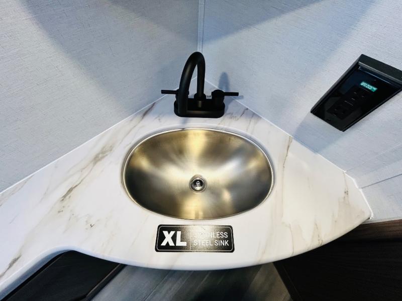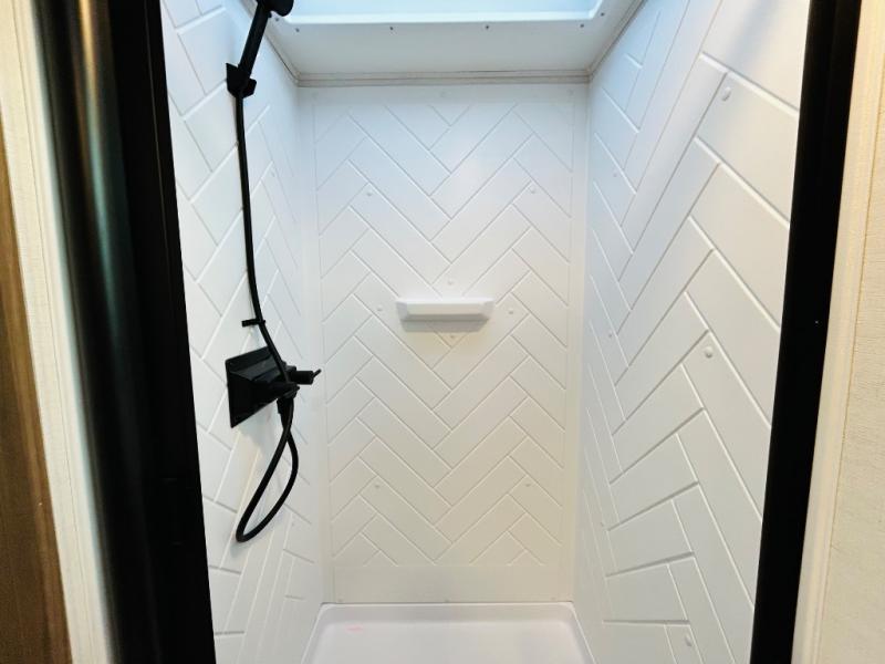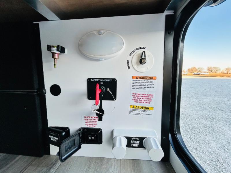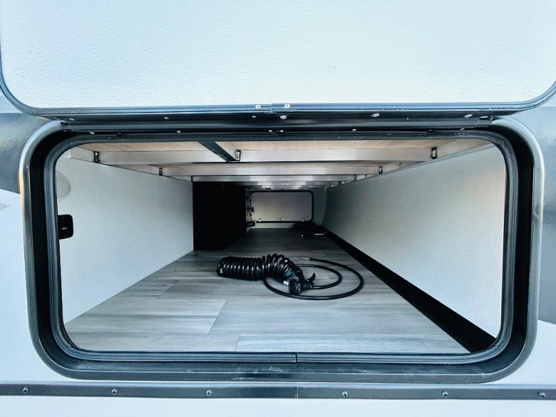 If you're looking for a trailer that can sleep more campers, this is the one! There are 46" x 74" bunks in the back right beside the full bath for easy nighttime use. You'll have your own bedroom up front, complete with a queen bed, dual wardrobe nightstands, and overhead storage. The large slide out in the main living area will provide your crew with plenty of space to dine at the booth dinette or just relax in front of the fireplace. There is a full kitchen inside, along with an exterior griddle/grill when you want to cook outdoors!