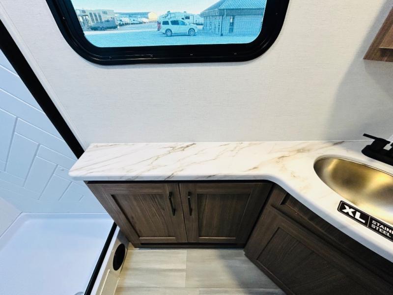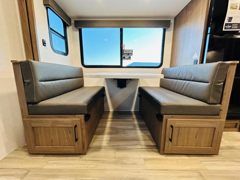 The Delta Ultra Lite travel trailers by Alliance RV are perfect for those looking for a lighter tow weight! The fully functional oversized atrium windows will let more natural light in, and the carpet free interior will be appreciated after a weekend at the lake. There are also magnet catches on all cabinets, soft close cabinet doors, and a kitchen toe kick with LED accent lighting. The exterior includes a pass-through storage for your gear, multiple temperature controlled spray ports, exterior awning controls, and Goodyear Endurance tires. Start a new adventure today in a Delta Ultra Lite travel trailer!