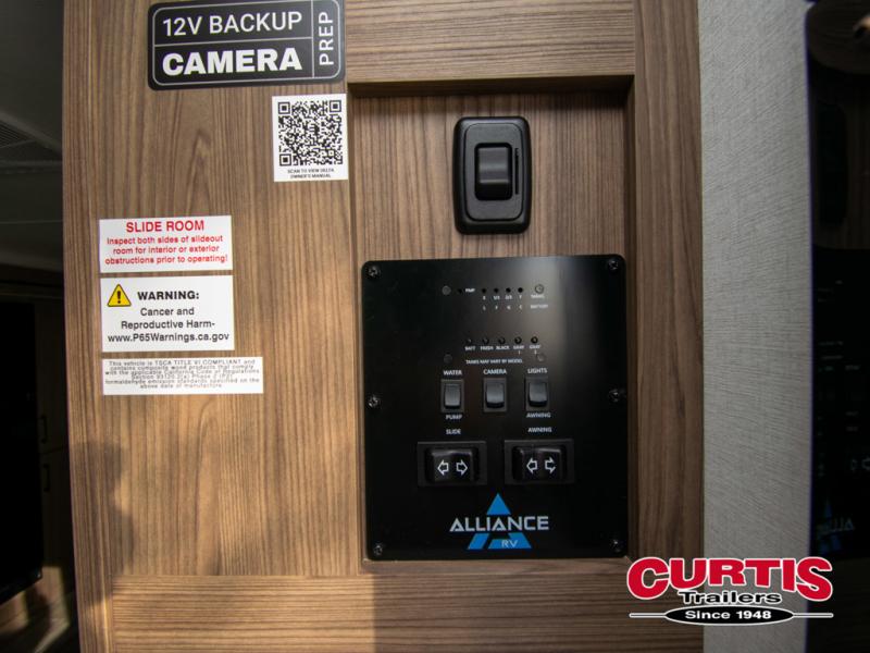 The Delta Ultra Lite travel trailers by Alliance RV are perfect for those looking for a lighter tow weight! The fully functional oversized atrium windows will let more natural light in, and the carpet free interior will be appreciated after a weekend at the lake. There are also magnet catches on all cabinets, soft close cabinet doors, and a kitchen toe kick with LED accent lighting. The exterior includes multiple temperature controlled spray ports, exterior awning controls, and Goodyear Endurance tires. Start a new adventure today in a Delta Ultra Lite travel trailer!