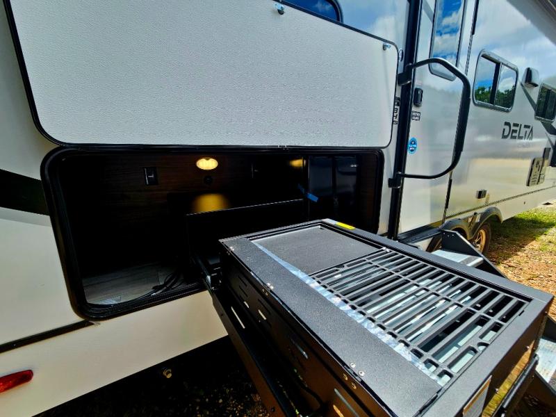 The Delta Ultra Lite travel trailers by Alliance RV are perfect for those looking for a lighter tow weight! The fully functional oversized atrium windows will let more natural light in, and the carpet free interior will be appreciated after a weekend at the lake. There are also magnet catches on all cabinets, soft close cabinet doors, and a kitchen toe kick with LED accent lighting. The exterior includes multiple temperature controlled spray ports, exterior awning controls, and Goodyear Endurance tires. Start a new adventure today in a Delta Ultra Lite travel trailer!
