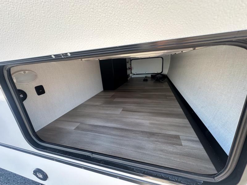 This couple's trailer is perfect for weekend trips to your favorite campground. The theater seat slide will provide comfort and space, while the fireplace across the room will have you feeling right at home. All of your meals can be made on the three burner cooktop, and clean up will be a breeze with the large kitchen sink. A full bath is complete with a toilet, sink, 32" shower and a linen closet, and the front queen bed is sure to provide a great night's rest. You'll also find dual wardrobes and nightstands, along with overhead storage to keep everything organized!