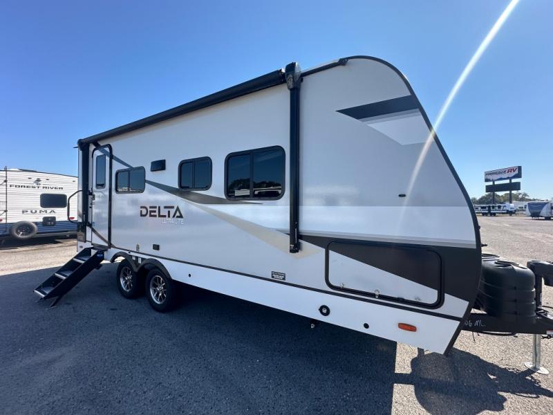 The Delta Ultra Lite travel trailers by Alliance RV are perfect for those looking for a lighter tow weight! The fully functional oversized atrium windows will let more natural light in, and the carpet free interior will be appreciated after a weekend at the lake. There are also magnet catches on all cabinets, soft close cabinet doors, and a kitchen toe kick with LED accent lighting. The exterior includes a pass-through storage for your gear, multiple temperature controlled spray ports, exterior awning controls, and Goodyear Endurance tires. Start a new adventure today in a Delta Ultra Lite travel trailer!
