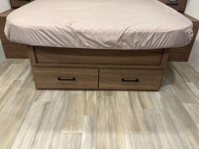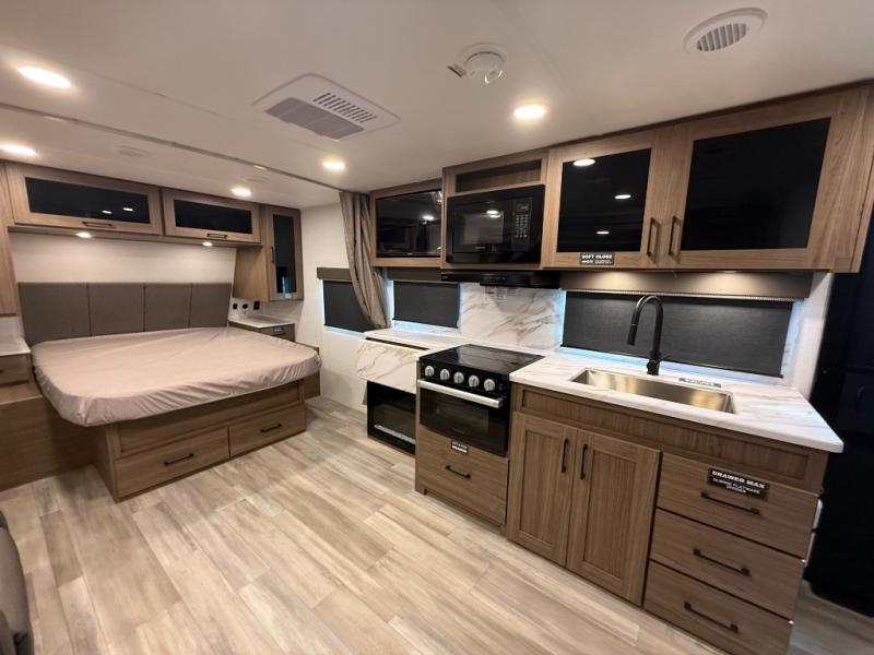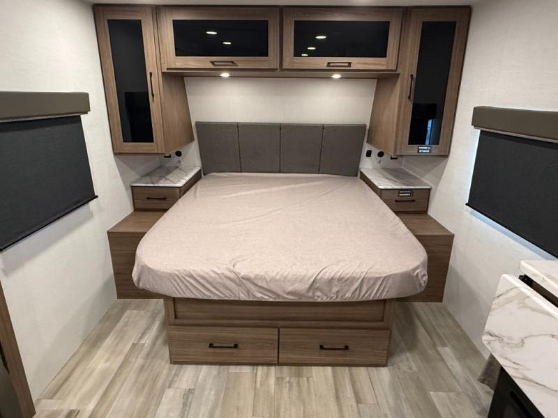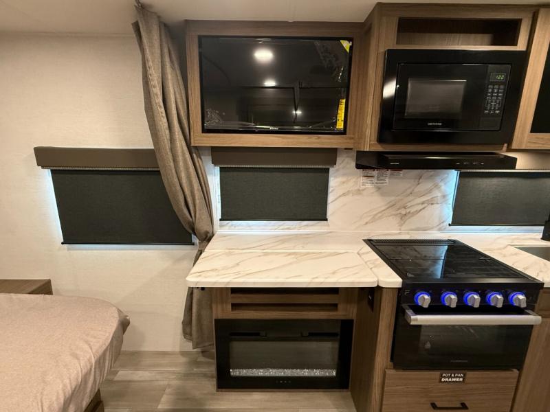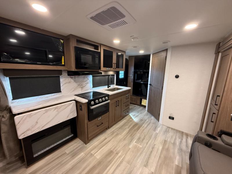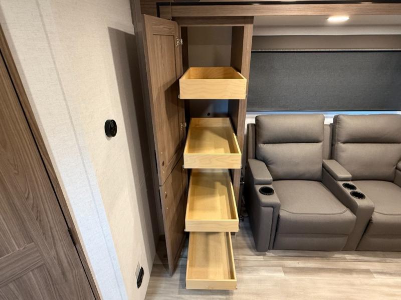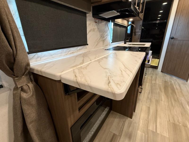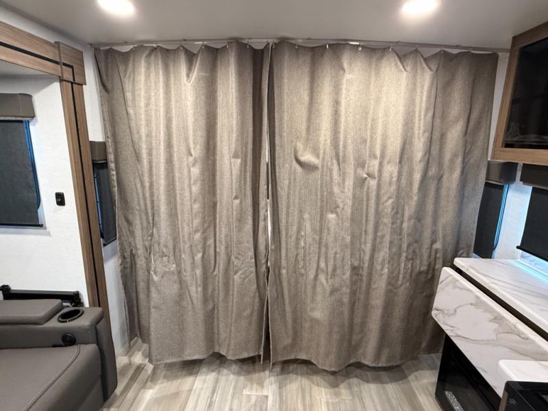 Lots of amenities: Fireplace, theater seating, full kitchen, good tank sizes, large windows—all make it more comfortable.