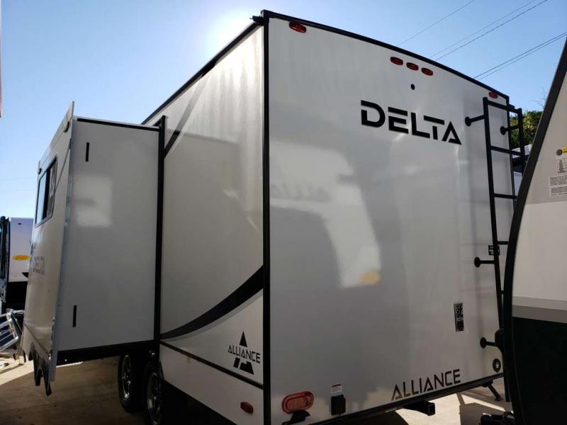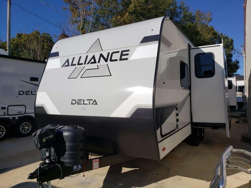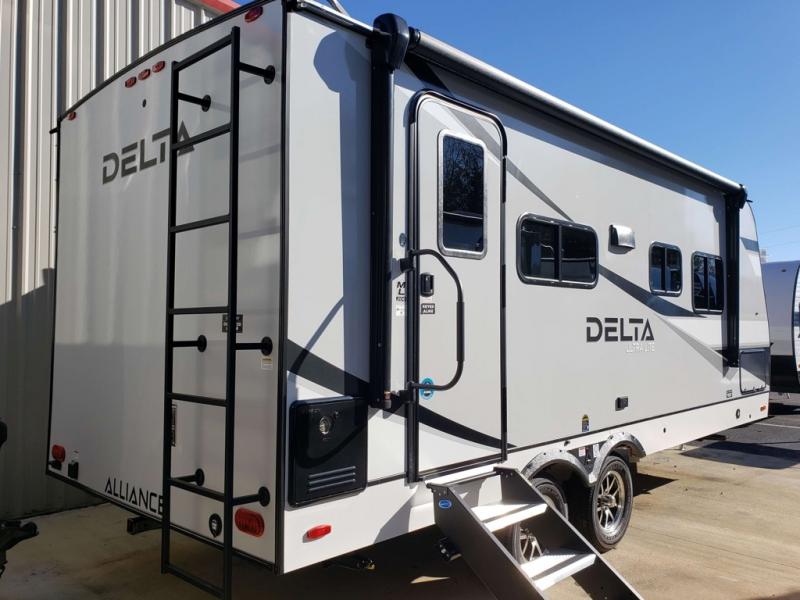 The Delta Ultra Lite travel trailers by Alliance RV are perfect for those looking for a lighter tow weight! The fully functional oversized atrium windows will let more natural light in, and the carpet free interior will be appreciated after a weekend at the lake. There are also magnet catches on all cabinets, soft close cabinet doors, and a kitchen toe kick with LED accent lighting. The exterior includes a pass-through storage for your gear, multiple temperature controlled spray ports, exterior awning controls, and Goodyear Endurance tires. Start a new adventure today in a Delta Ultra Lite travel trailer!