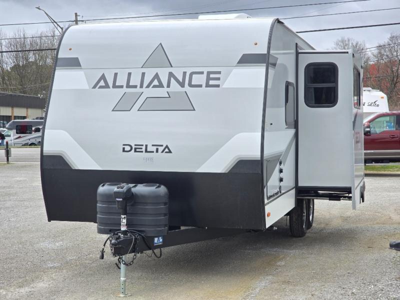 The Delta Ultra Lite travel trailers by Alliance RV are perfect for those looking for a lighter tow weight! The fully functional oversized atrium windows will let more natural light in, and the carpet free interior will be appreciated after a weekend at the lake. There are also magnet catches on all cabinets, soft close cabinet doors, and a kitchen toe kick with LED accent lighting. The exterior includes a pass-through storage for your gear, multiple temperature controlled spray ports, exterior awning controls, and Goodyear Endurance tires. Start a new adventure today in a Delta Ultra Lite travel trailer!