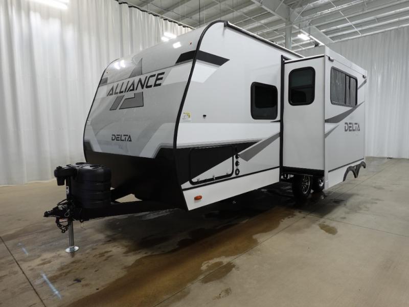 The Delta Ultra Lite travel trailers by Alliance RV are perfect for those looking for a lighter tow weight! The fully functional oversized atrium windows will let more natural light in, and the carpet free interior will be appreciated after a weekend at the lake. There are also magnet catches on all cabinets, soft close cabinet doors, and a kitchen toe kick with LED accent lighting. The exterior includes multiple temperature controlled spray ports, exterior awning controls, and Goodyear Endurance tires. Start a new adventure today in a Delta Ultra Lite travel trailer!