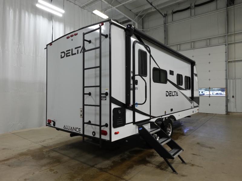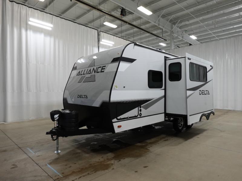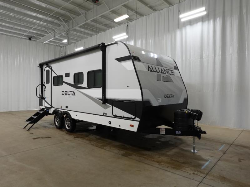The Delta Ultra Lite travel trailers by Alliance RV are perfect for those looking for a lighter tow weight! The fully functional oversized atrium windows will let more natural light in, and the carpet free interior will be appreciated after a weekend at the lake. There are also magnet catches on all cabinets, soft close cabinet doors, and a kitchen toe kick with LED accent lighting. The exterior includes multiple temperature controlled spray ports, exterior awning controls, and Goodyear Endurance tires. Start a new adventure today in a Delta Ultra Lite travel trailer!