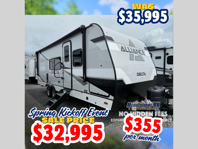 The Delta Ultra Lite travel trailers by Alliance RV are perfect for those looking for a lighter tow weight! The fully functional oversized atrium windows will let more natural light in, and the carpet free interior will be appreciated after a weekend at the lake. There are also magnet catches on all cabinets, soft close cabinet doors, and a kitchen toe kick with LED accent lighting. The exterior includes multiple temperature controlled spray ports, exterior awning controls, and Goodyear Endurance tires. Start a new adventure today in a Delta Ultra Lite travel trailer!