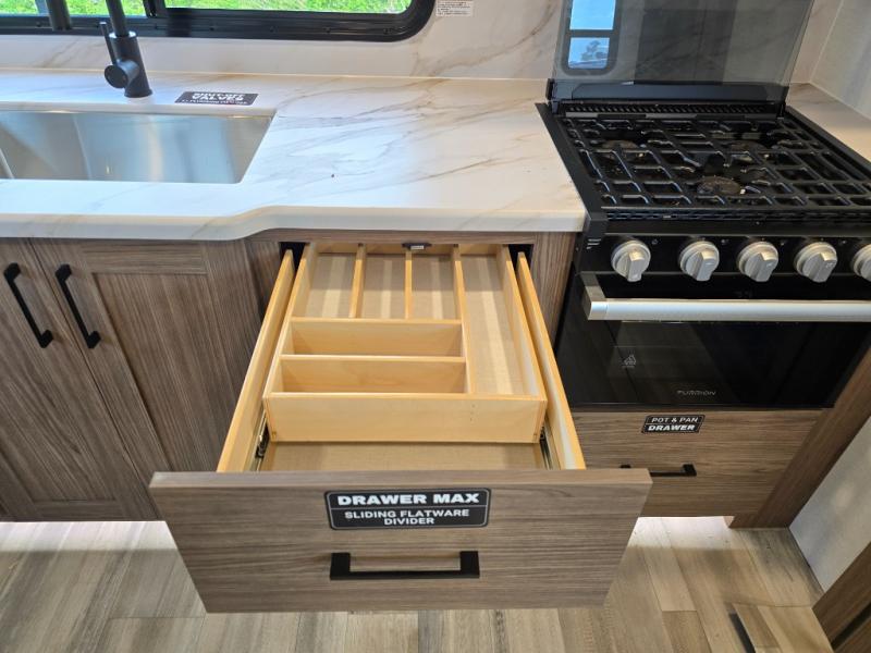 The Delta Ultra Lite travel trailers by Alliance RV are perfect for those looking for a lighter tow weight! The fully functional oversized atrium windows will let more natural light in, and the carpet free interior will be appreciated after a weekend at the lake. There are also magnet catches on all cabinets, soft close cabinet doors, and a kitchen toe kick with LED accent lighting. The exterior includes a pass-through storage for your gear, multiple temperature controlled spray ports, exterior awning controls, and Goodyear Endurance tires. Start a new adventure today in a Delta Ultra Lite travel trailer!