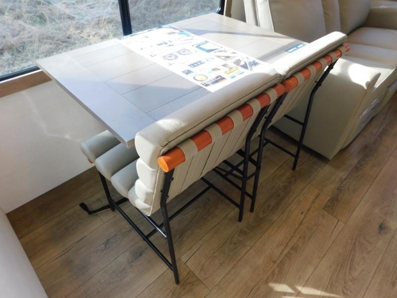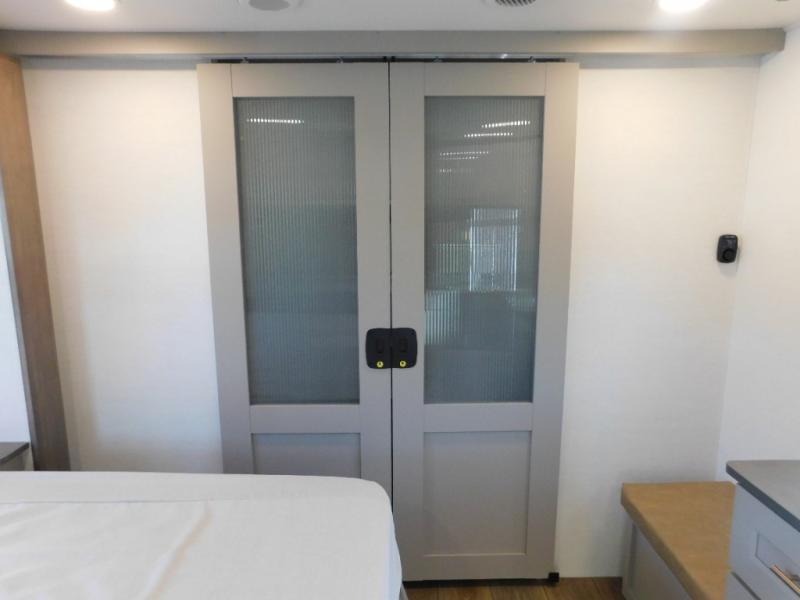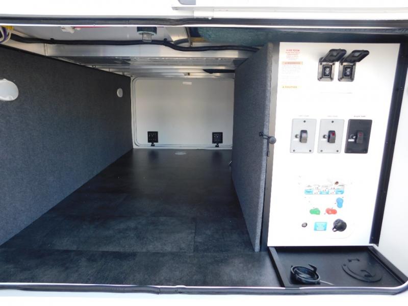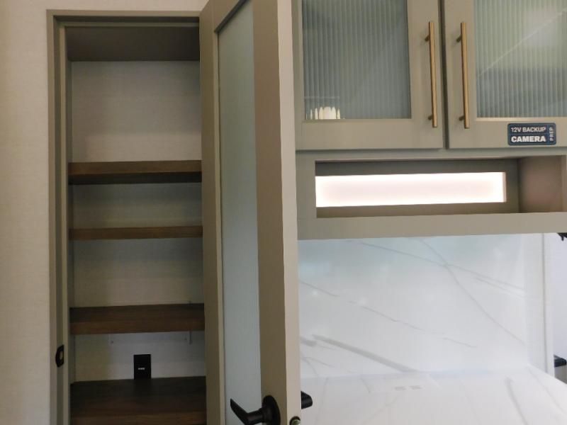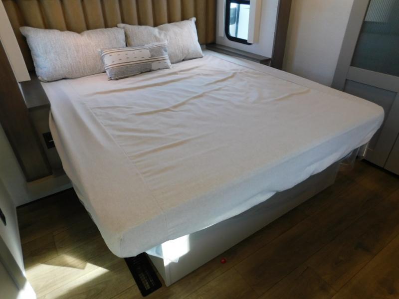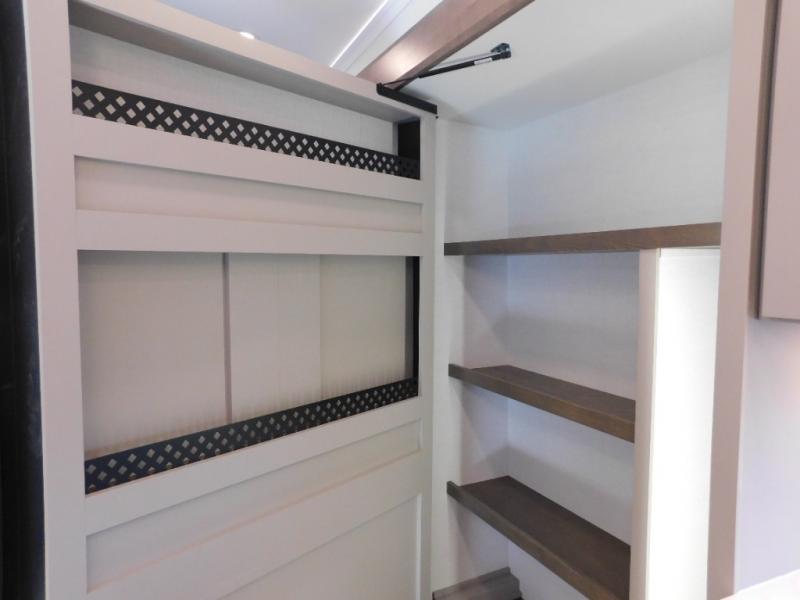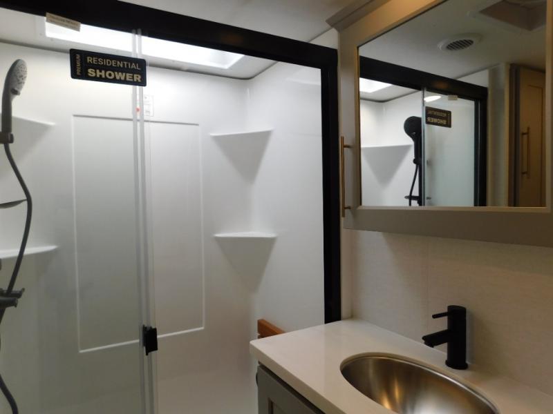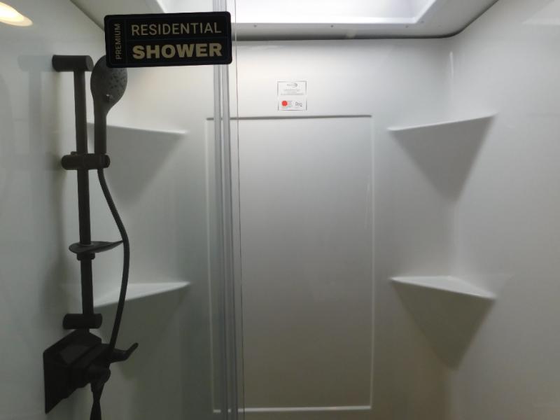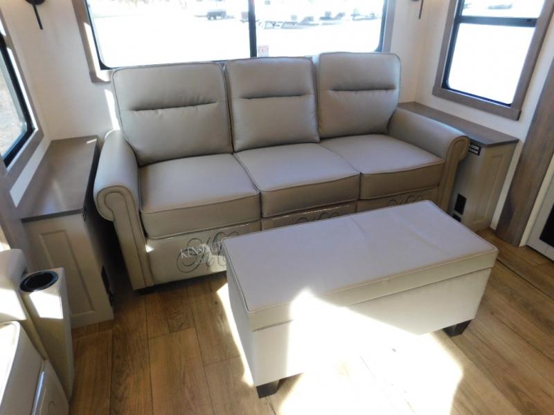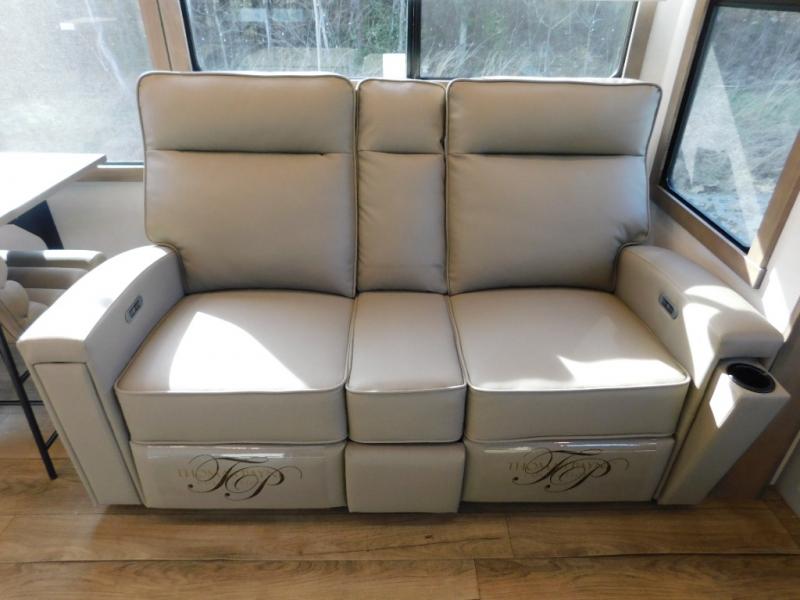 Search for the best views, the nicest RV park, or a place you haven't seen for years with this Paradigm in tow! There is a king bed slide in the master bedroom, a Smart TV, and a dresser with flip-up hidden storage for your belongings. The full bathroom offers a large residential shower, a porcelain toilet with a soft close seat, and storage for your linens, while the kitchen gives you two pantries, an island with a large undermount single basin sink and dishwasher prep if you want the option for easy clean up. You will also have a residential microwave and range, plus a 3.73 cu. ft. oven to make meals. When you're ready to relax for the evening, head to the rear living area to enjoy the dual recliner love seat across from the 50" Smart TV and fireplace!