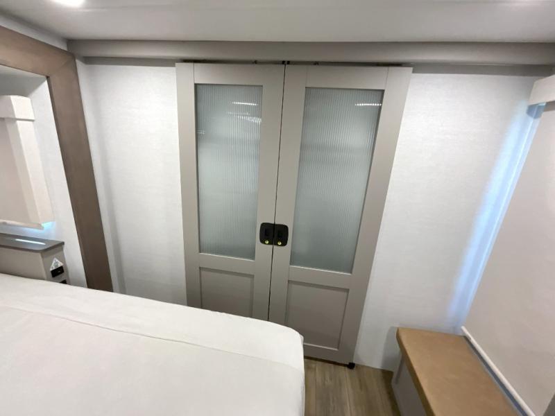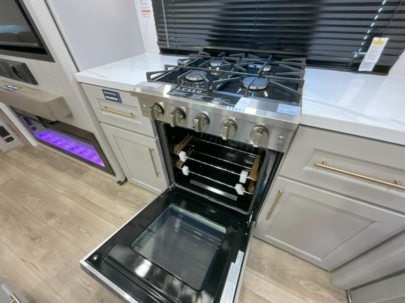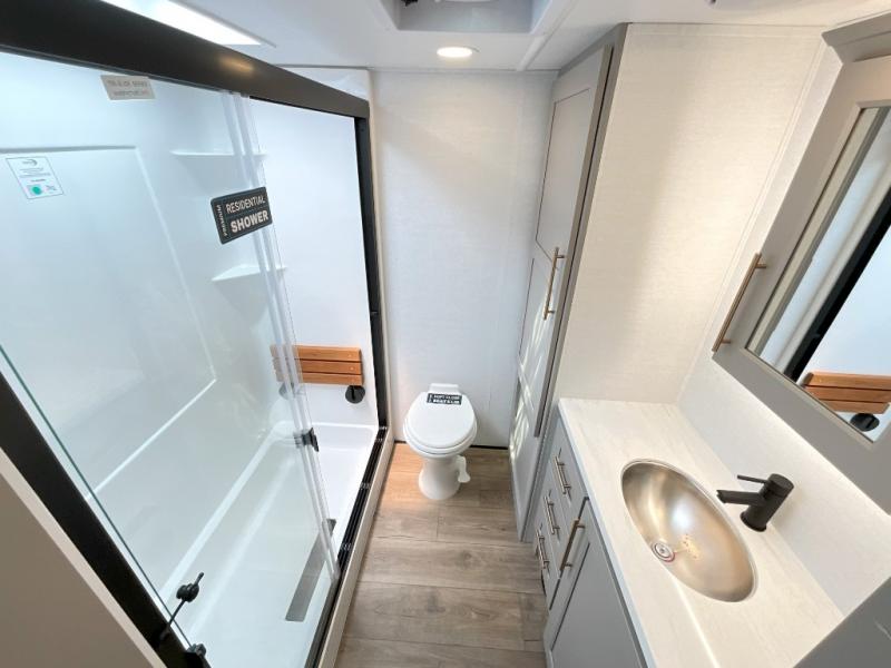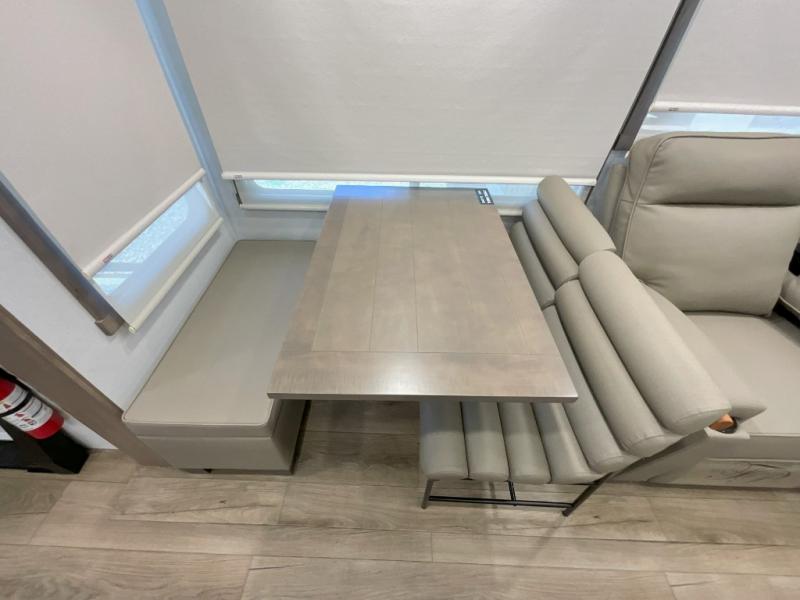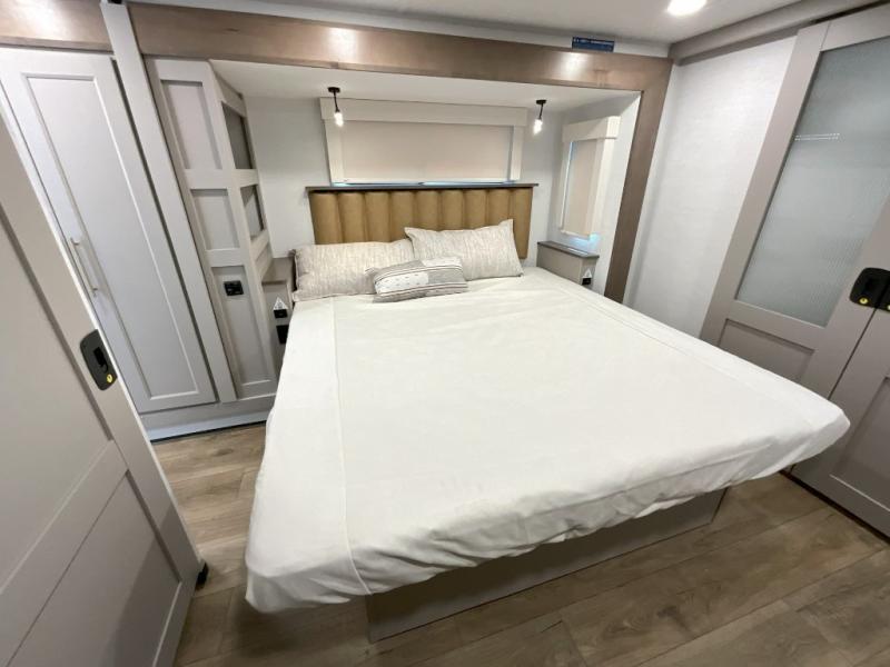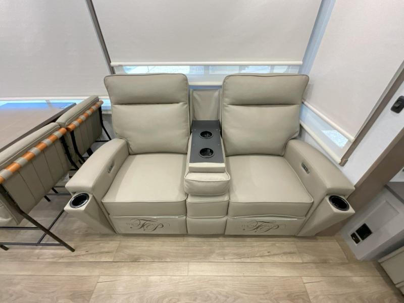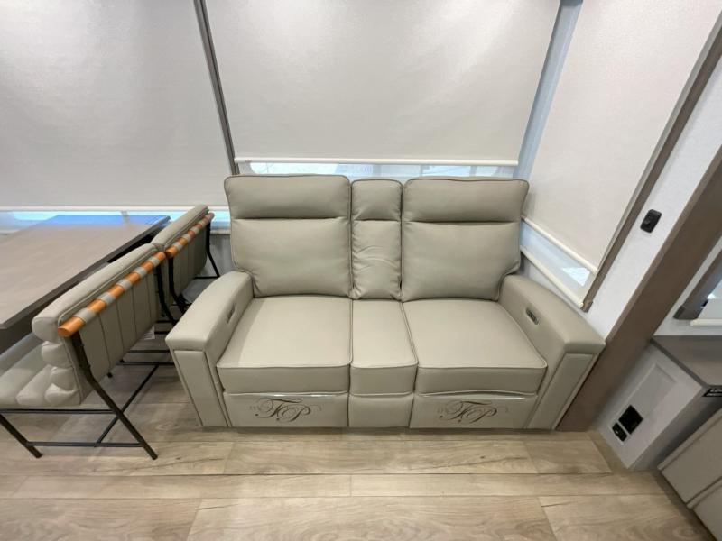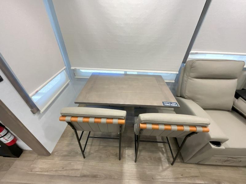 The Paradigm fifth wheels by Alliance RV are functional, high-quality, and luxurious for an unforgettable camping experience. There are three A/C units and a 40K BTU furnace to keep you comfortable year around, and you'll appreciate additional convenient amenities, like the all-in-one enclosed/heated utility center and the color coded and numbered wiring. A Rota-Flex pin box comes standard for hassle-free towing, along with Super-G 4,400 lb. rated tires and Dexter 7,000 lb. axles. You'll love the kitchen with its LG solid surface countertops and Lusso range, plus there is LED motion lighting in the pantry and a Maxx fan with a rain sensor to keep everything fresh when making dinner. Each model also includes an HD Smart TV in the living room and bedroom, plus a Winegard Air 360 antenna to keep you connected to the outside world. And of course there are a variety of options you can choose from to further customize your fifth wheel; dual pane windows, Super Solar Plus, slide out awning toppers, and generator prep or a generator to name a few!