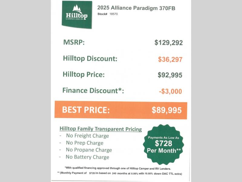 Alliance RV Paradigm fifth wheel 370FB highlights: