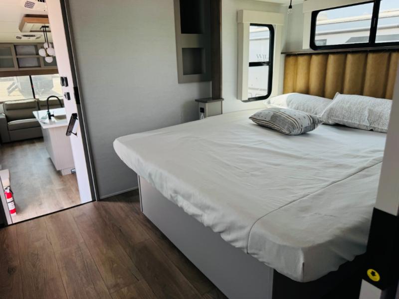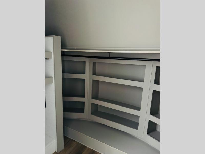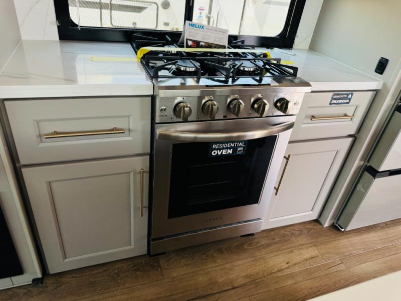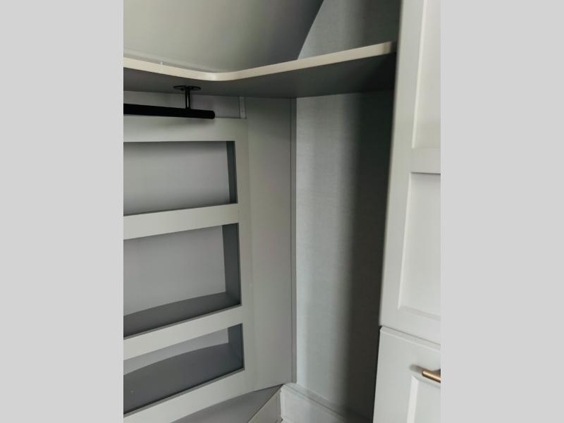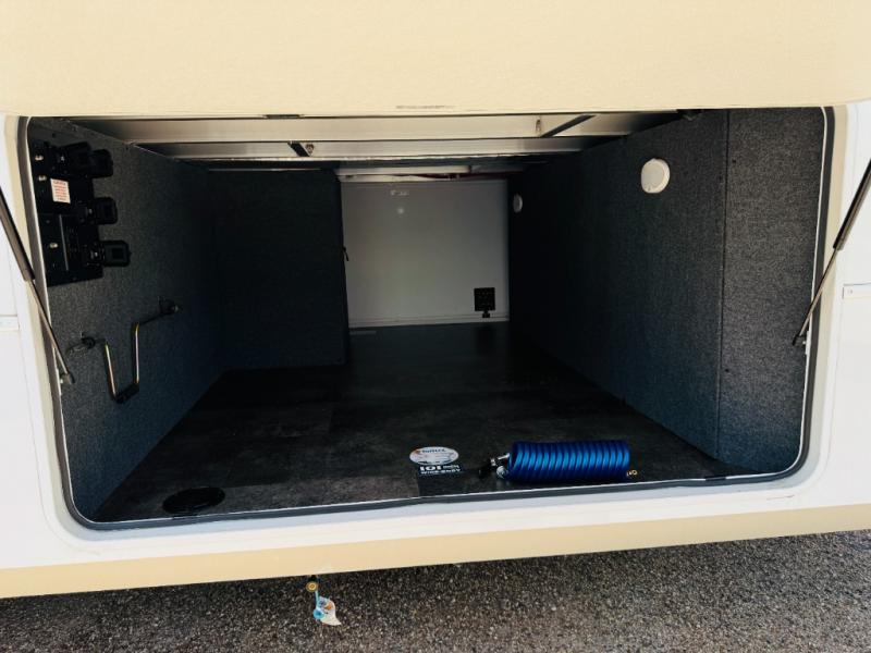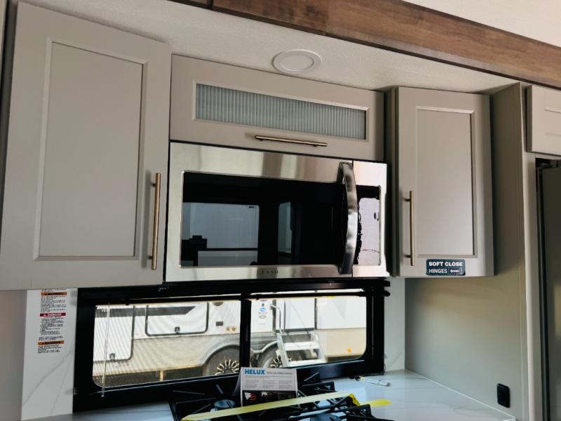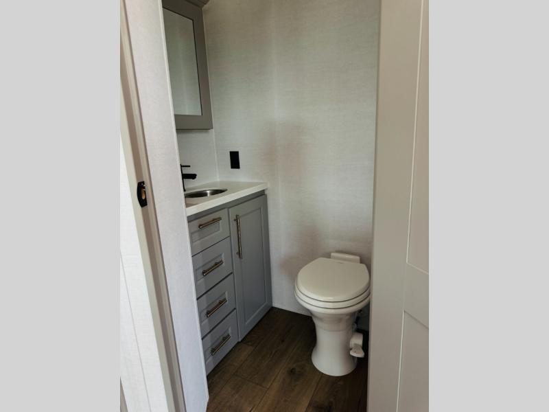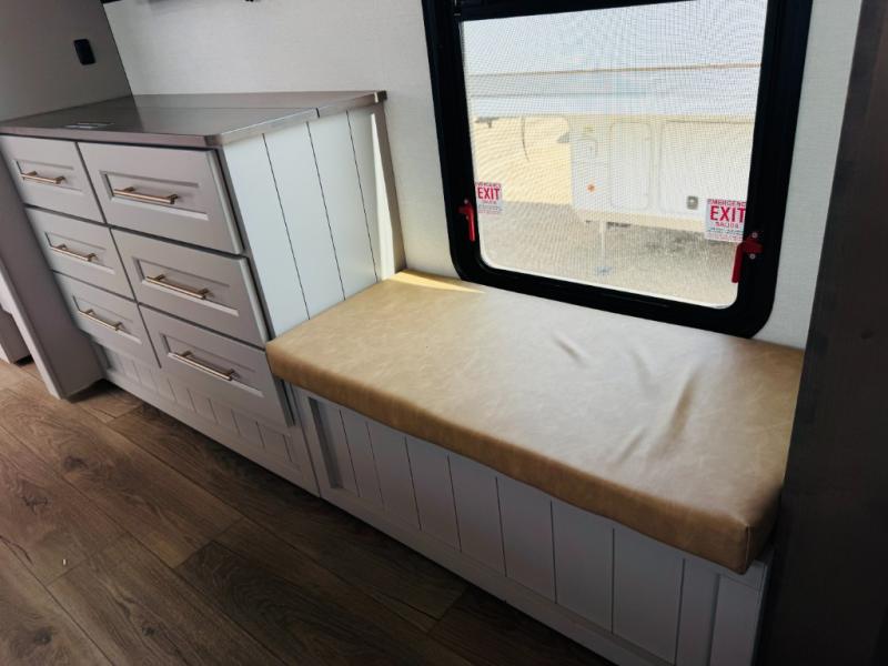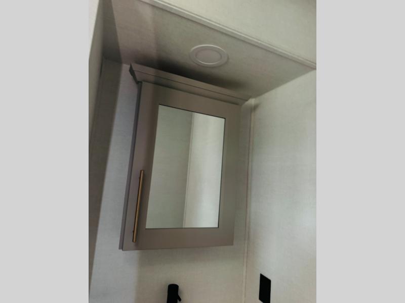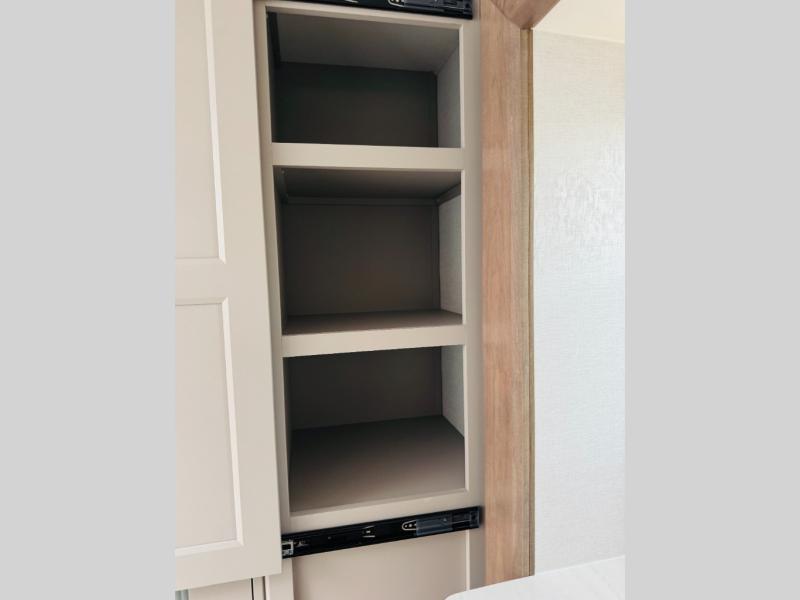 Whether you decide to be a full-timer or a long-trip traveler, this Paradigm offers so many comforts and conveniences you will love! The large full bathroom might be the reason you decide to be a new owner because you will have a large 61" x 30" shower to get cleaned up in, linen storage, and a walk-in closet with a hamper, shelves, and a space prepped for an optional washer/dryer. The bedroom allows you to sleep like a king and gives you extra floor space with the two slides, and there is storage in the flip-top dresser and under the seat, plus you can watch the Smart TV. The space saving sliding doors offer style as well. The cook will love all the residential appliances, including a residential refrigerator. The kitchen island gives you a large sink and dishwasher prep also. The half bath is super convenient just like the entry sitting bench/coat rack and closet. And you can relax on the sleeper sofa, dual recliner love seat, or swivel table and desk.