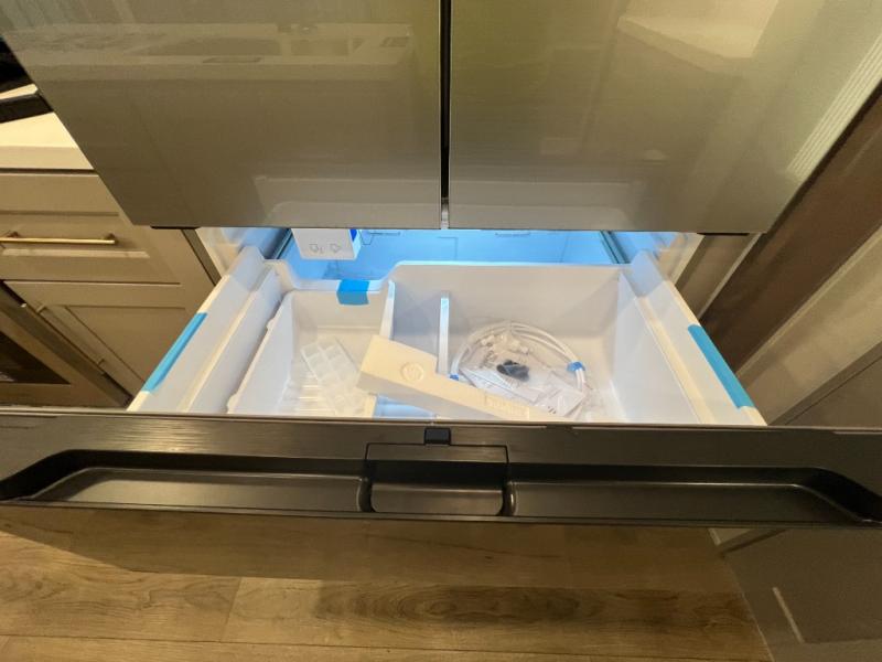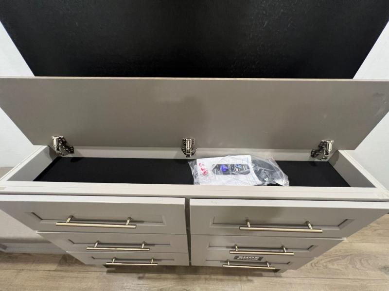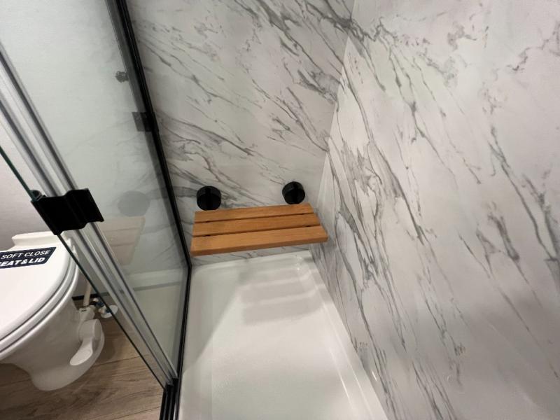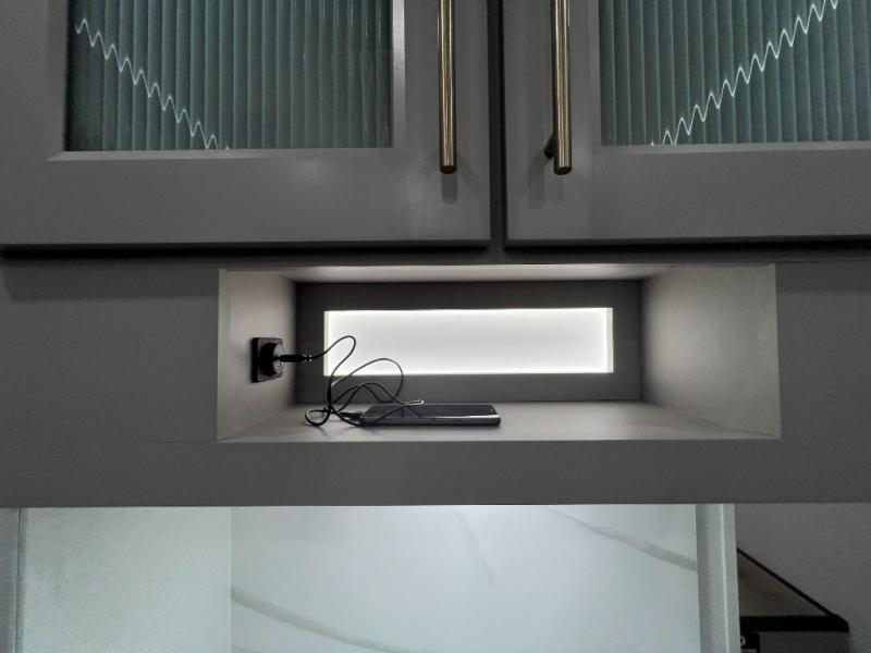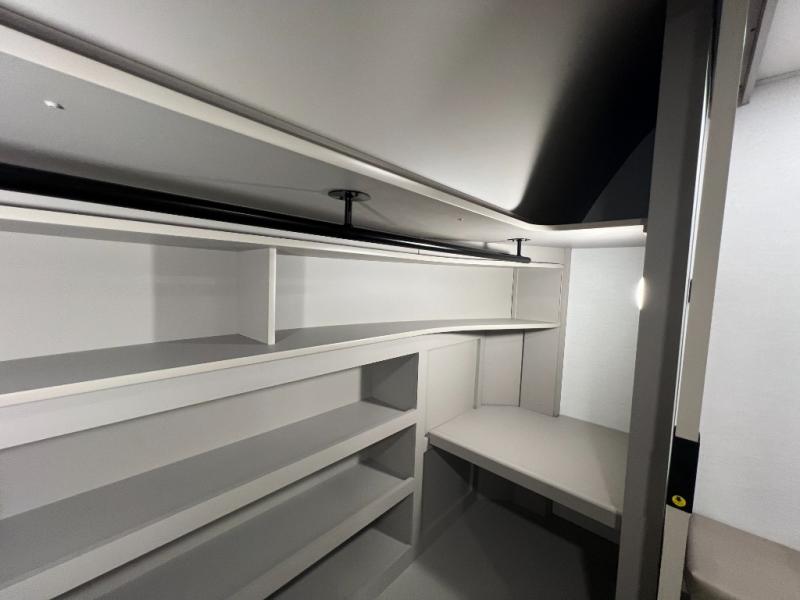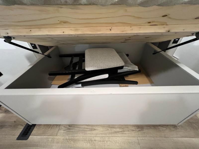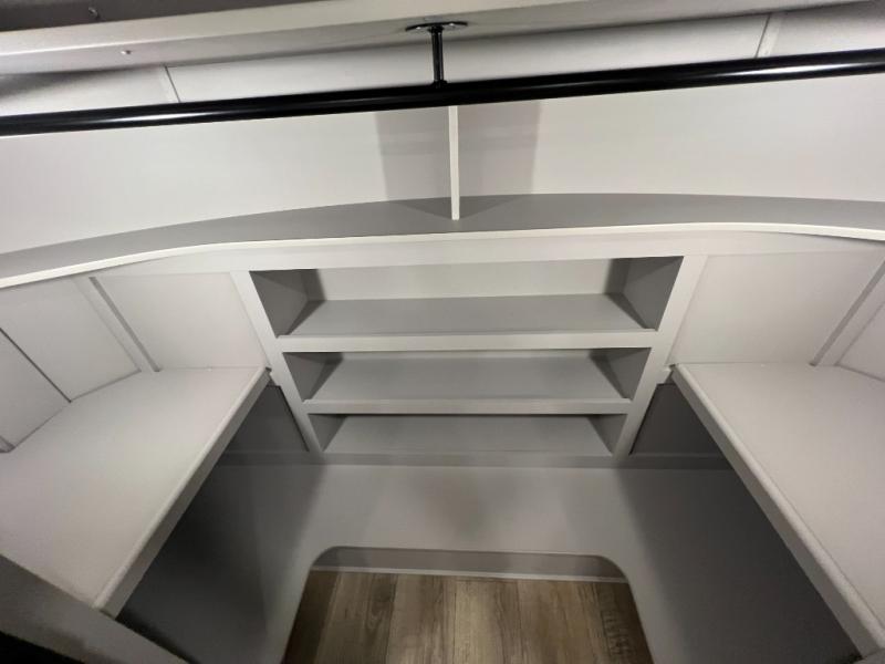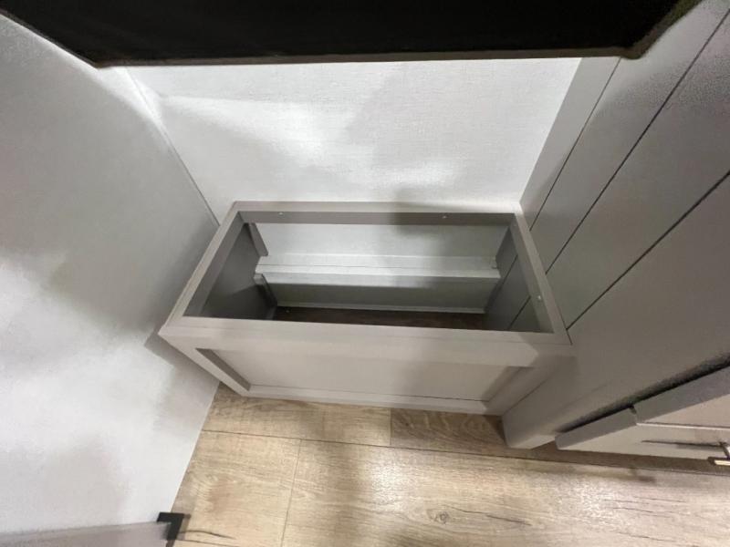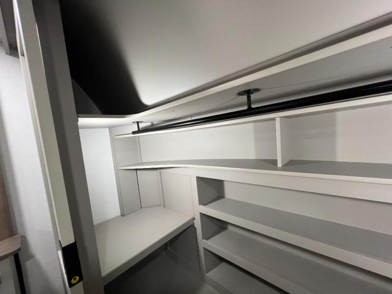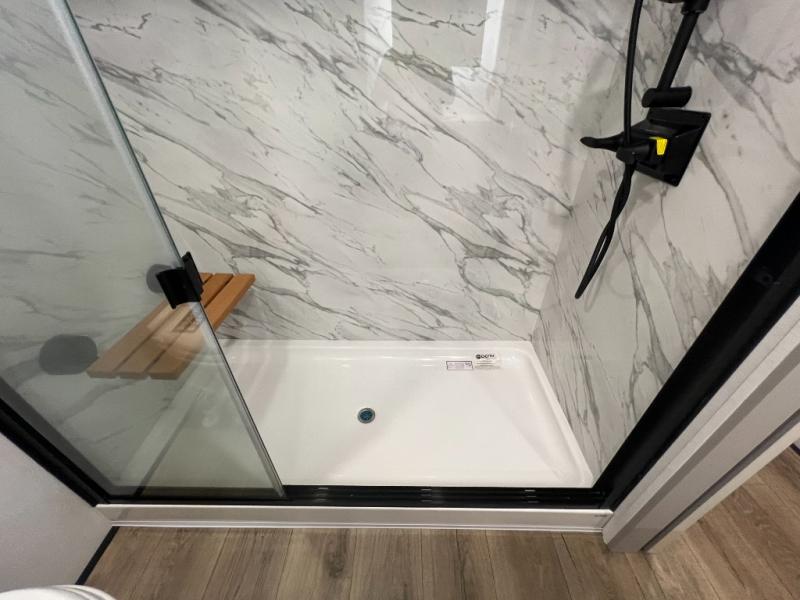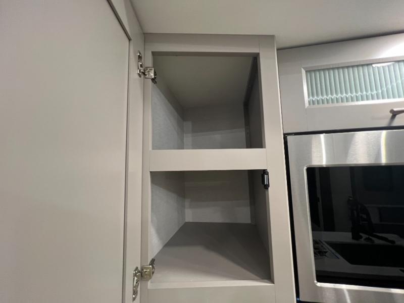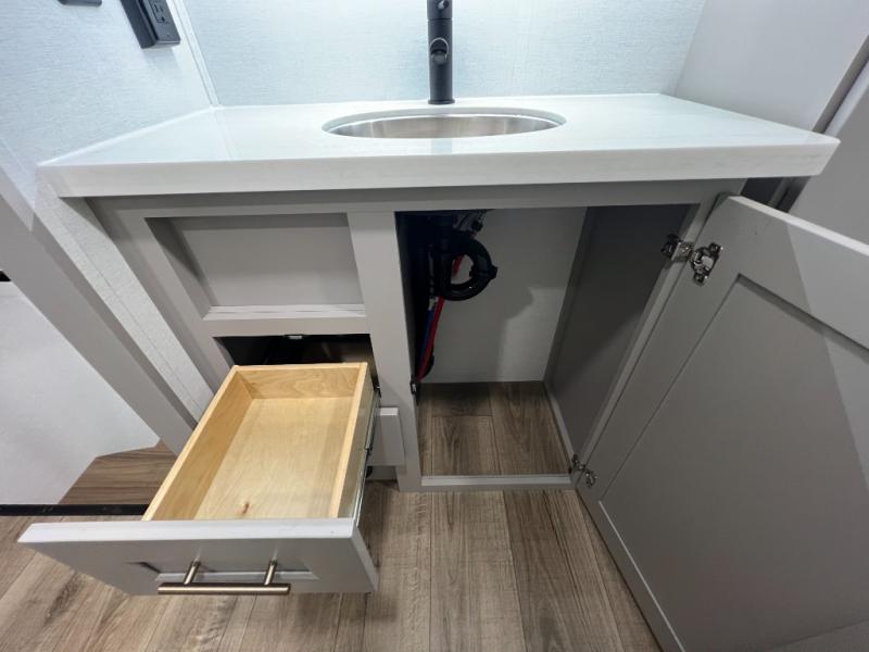 You'll love everything about this luxurious fifth wheel! There are five slide outs so you can enjoy more space than ever, and the rear living area can double as a den for guest. They can sleep on the sleeper sofa or second sofa with overhead storage, and there is a dual recliner across from the 65" Smart TV. The middle kitchen includes a kitchen island with dishwasher prep, generous counter space, a pantry and hutch for storage, and a swivel table and desk to dine or work at! This model also includes a spacious full bath with a large 61" x 30" shower for all-around comfort plus a front private bedroom with a king bed slide out. There is also a walk-in closet with washer and dryer prep, a flip top dresser with a Smart TV, and a seat with storage to keep everything tidy!