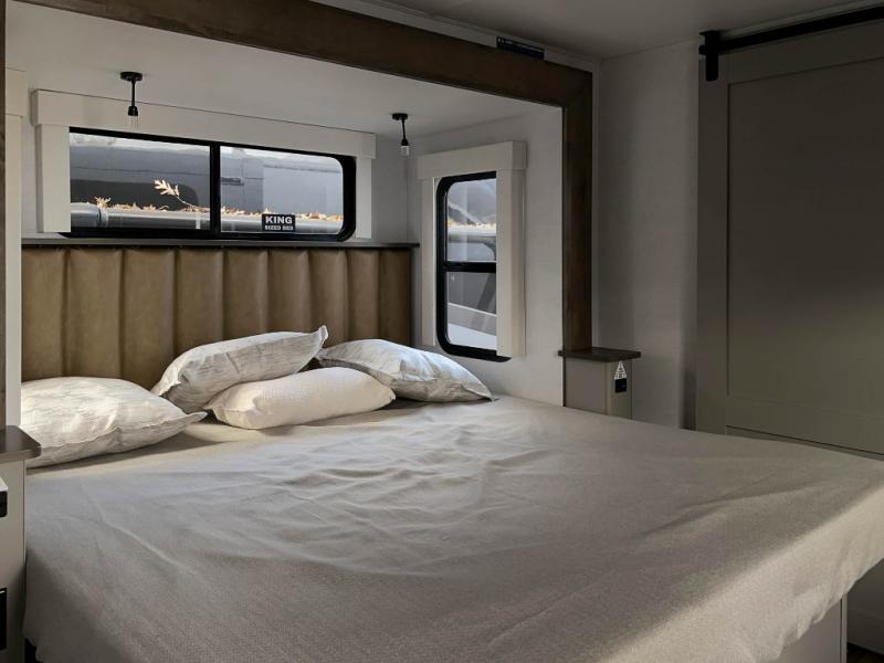 The Paradigm fifth wheels by Alliance RV are functional, high-quality, and luxurious for an unforgettable camping experience. There are three A/C units and a 40K BTU furnace to keep you comfortable year around, and you'll appreciate additional convenient amenities, like the all-in-one enclosed/heated utility center and the color coded and numbered wiring. A Rota-Flex pin box comes standard for hassle-free towing, along with Super-G 4,400 lb. rated tires and Dexter 7,000 lb. axles. You'll love the kitchen with its LG solid surface countertops and Insignia range, plus there is LED motion lighting in the pantry and a Maxx fan with a rain sensor to keep everything fresh when making dinner. Each model also includes an HD Smart TV in the living room and bedroom, plus a Winegard Air 360 antenna to keep you connected to the outside world. And of course there are a variety of options you can choose from to further customize your fifth wheel; dual pane windows, Super Solar Plus, slide out awning toppers, and generator prep or a generator to name a few!