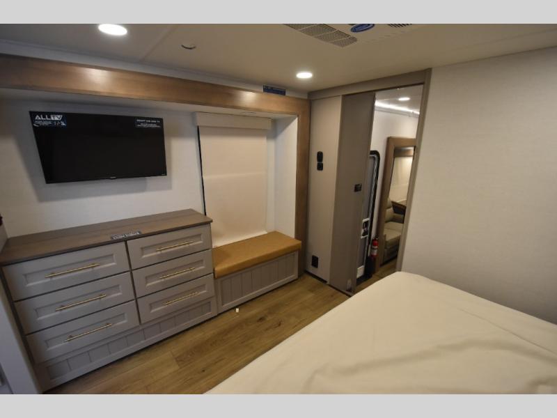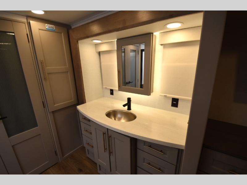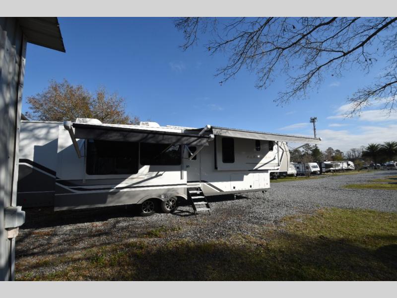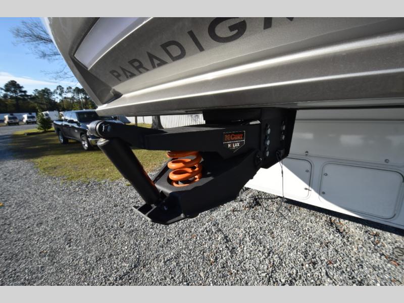 The Paradigm fifth wheels by Alliance RV are functional, high-quality, and luxurious for an unforgettable camping experience. There are three A/C units and a 40K BTU furnace to keep you comfortable year around, and you'll appreciate additional convenient amenities, like the all-in-one enclosed/heated utility center and the color coded and numbered wiring. A Rota-Flex pin box comes standard for hassle-free towing, along with Super-G 4,400 lb. rated tires and Dexter 7,000 lb. axles. You'll love the kitchen with its LG solid surface countertops and Insignia range, plus there is LED motion lighting in the pantry and a Maxx fan with a rain sensor to keep everything fresh when making dinner. Each model also includes an HD Smart TV in the living room and bedroom, plus a Winegard Air 360 antenna to keep you connected to the outside world. And of course there are a variety of options you can choose from to further customize your fifth wheel; dual pane windows, Super Solar Plus, slide out awning toppers, and generator prep or a generator to name a few!