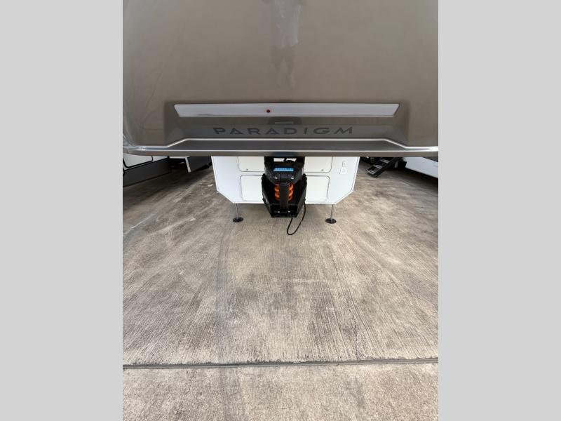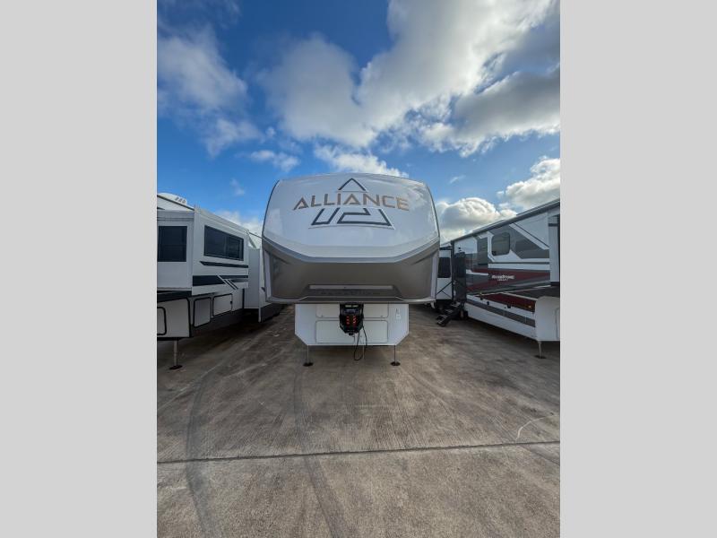 The Paradigm fifth wheels by Alliance RV are functional, high-quality, and luxurious for an unforgettable camping experience. There are three A/C units and a 40K BTU furnace to keep you comfortable year around, and you'll appreciate additional convenient amenities, like the all-in-one enclosed/heated utility center and the color coded and numbered wiring. A Rota-Flex pin box comes standard for hassle-free towing, along with Super-G 4,400 lb. rated tires and Dexter 7,000 lb. axles. You'll love the kitchen with its LG solid surface countertops and Lusso range, plus there is LED motion lighting in the pantry and a Maxx fan with a rain sensor to keep everything fresh when making dinner. Each model also includes an HD Smart TV in the living room and bedroom, plus a Winegard Air 360 antenna to keep you connected to the outside world. And of course there are a variety of options you can choose from to further customize your fifth wheel; dual pane windows, Super Solar Plus, slide out awning toppers, and generator prep or a generator to name a few!