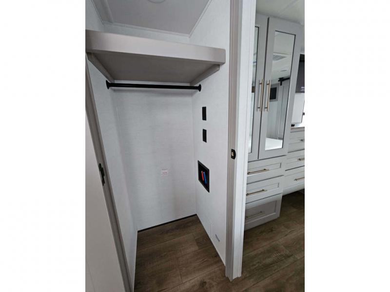 The Paradigm fifth wheels by Alliance RV are functional, high-quality, and luxurious for an unforgettable camping experience. There are three A/C units and a 40K BTU furnace to keep you comfortable year around, and you'll appreciate additional convenient amenities, like the all-in-one enclosed/heated utility center and the color coded and numbered wiring. A Rota-Flex pin box comes standard for hassle-free towing, along with Super-G 4,400 lb. rated tires and Dexter 7,000 lb. axles. You'll love the kitchen with its LG solid surface countertops and Insignia range, plus there is LED motion lighting in the pantry and a Maxx fan with a rain sensor to keep everything fresh when making dinner. Each model also includes an HD Smart TV in the living room and bedroom, plus a Winegard Air 360 antenna to keep you connected to the outside world. And of course there are a variety of options you can choose from to further customize your fifth wheel; dual pane windows, Super Solar Plus, slide out awning toppers, and generator prep or a generator to name a few!