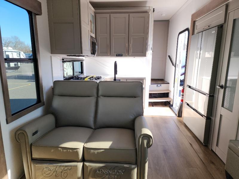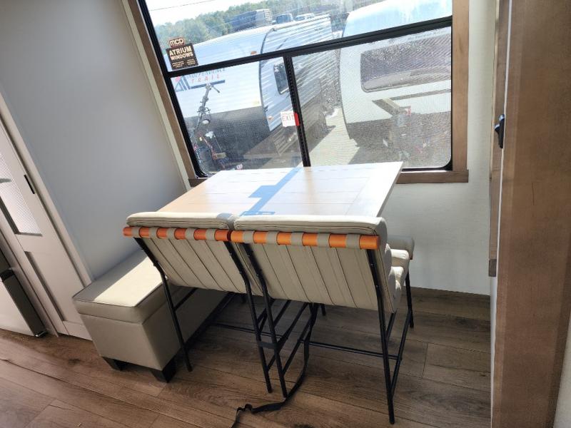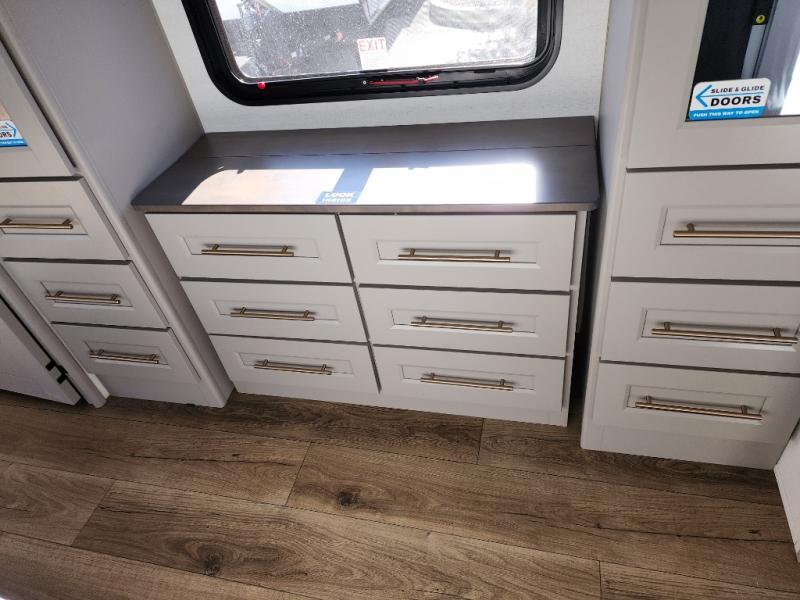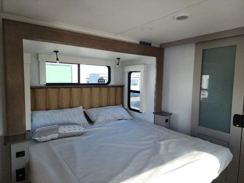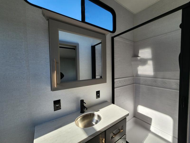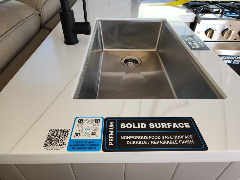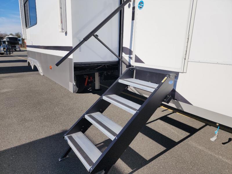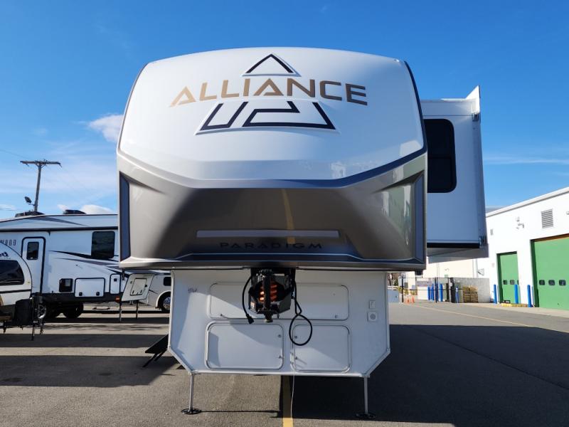 The Paradigm fifth wheels by Alliance RV are functional, high-quality, and luxurious for an unforgettable camping experience. There are three A/C units and a 40K BTU furnace to keep you comfortable year around, and you'll appreciate additional convenient amenities, like the all-in-one enclosed/heated utility center and the color coded and numbered wiring. A Rota-Flex pin box comes standard for hassle-free towing, along with Super-G 4,400 lb. rated tires and Dexter 7,000 lb. axles. You'll love the kitchen with its LG solid surface countertops and Insignia range, plus there is LED motion lighting in the pantry and a Maxx fan with a rain sensor to keep everything fresh when making dinner. Each model also includes an HD Smart TV in the living room and bedroom, plus a Winegard Air 360 antenna to keep you connected to the outside world. And of course there are a variety of options you can choose from to further customize your fifth wheel; dual pane windows, Super Solar Plus, slide out awning toppers, and generator prep or a generator to name a few!