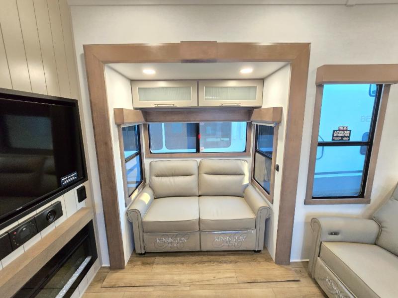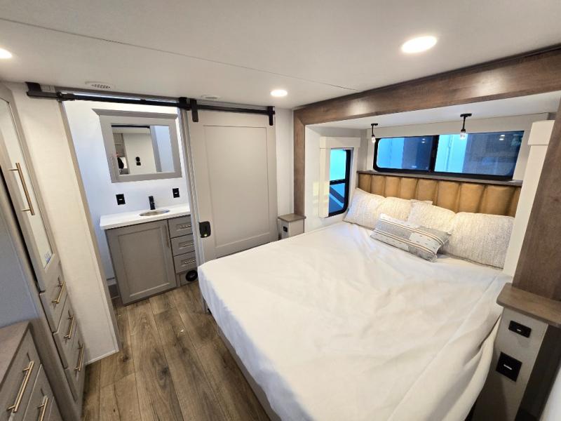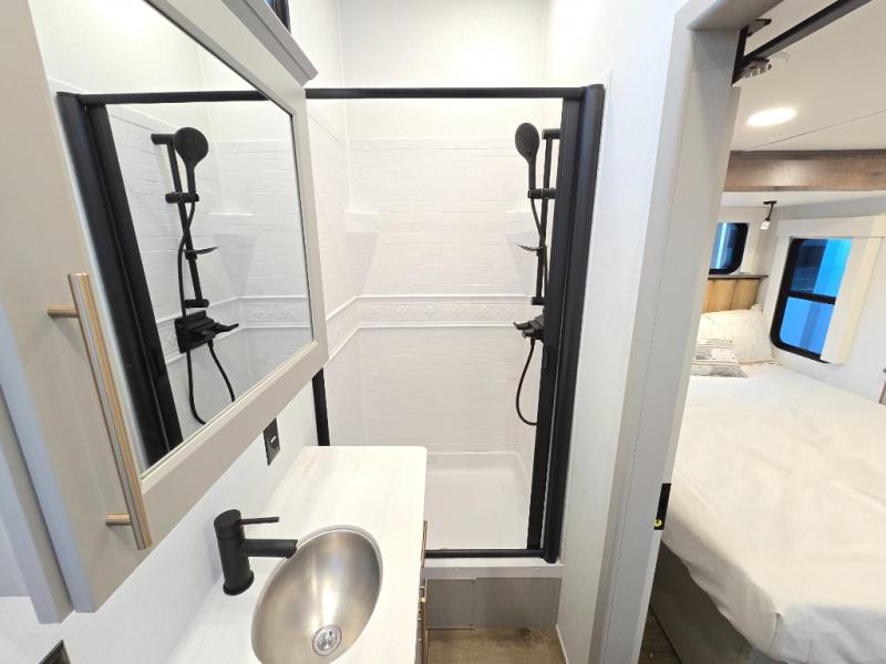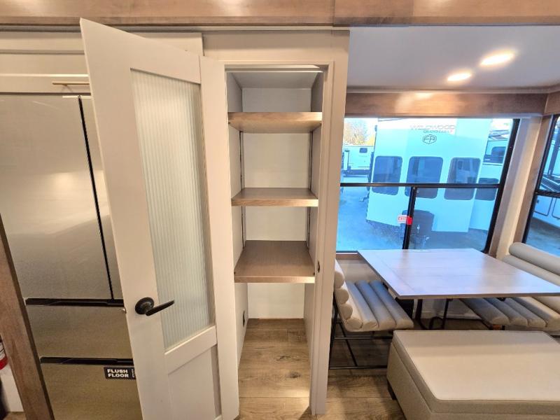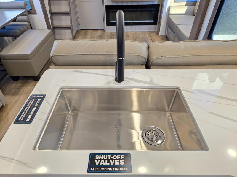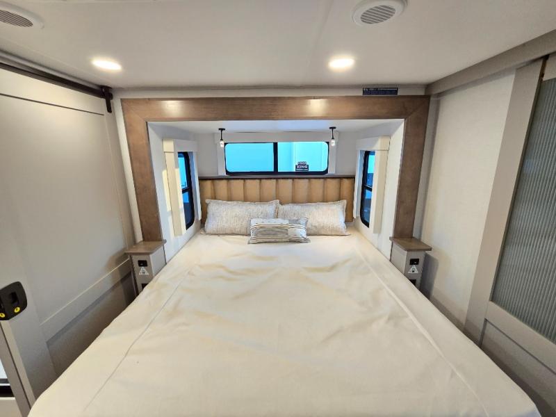 The Paradigm fifth wheels by Alliance RV are functional, high-quality, and luxurious for an unforgettable camping experience. There are three A/C units and a 40K BTU furnace to keep you comfortable year around, and you'll appreciate additional convenient amenities, like the all-in-one enclosed/heated utility center and the color coded and numbered wiring. A Rota-Flex pin box comes standard for hassle-free towing, along with Super-G 4,400 lb. rated tires and Dexter 7,000 lb. axles. You'll love the kitchen with its LG solid surface countertops and Insignia range, plus there is LED motion lighting in the pantry and a Maxx fan with a rain sensor to keep everything fresh when making dinner. Each model also includes an HD Smart TV in the living room and bedroom, plus a Winegard Air 360 antenna to keep you connected to the outside world. And of course there are a variety of options you can choose from to further customize your fifth wheel; dual pane windows, Super Solar Plus, slide out awning toppers, and generator prep or a generator to name a few!