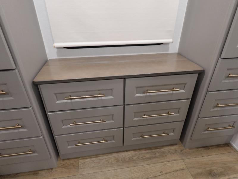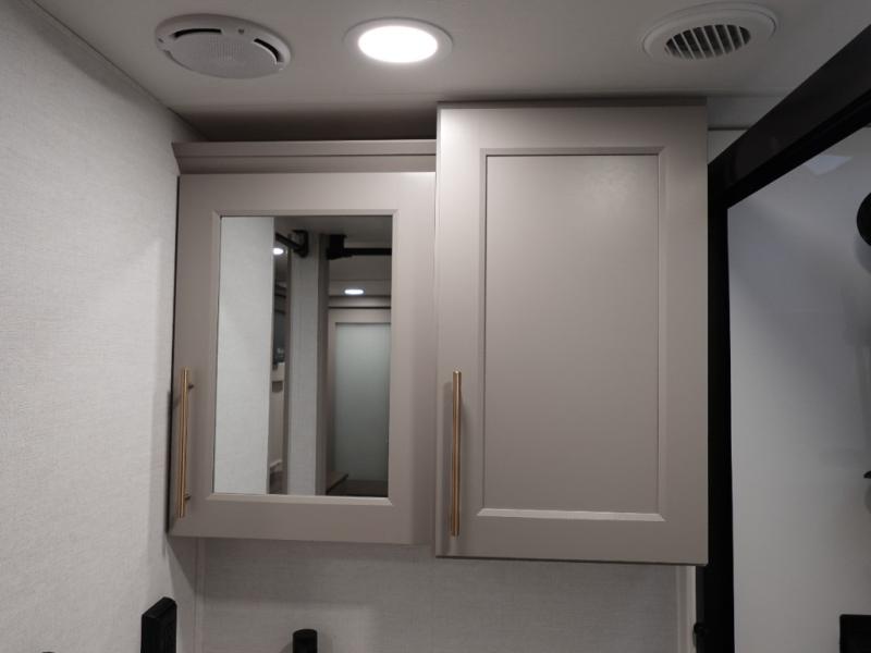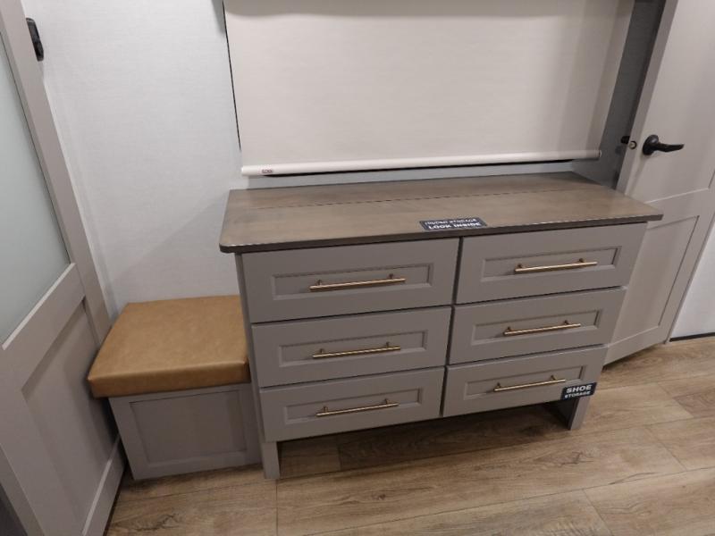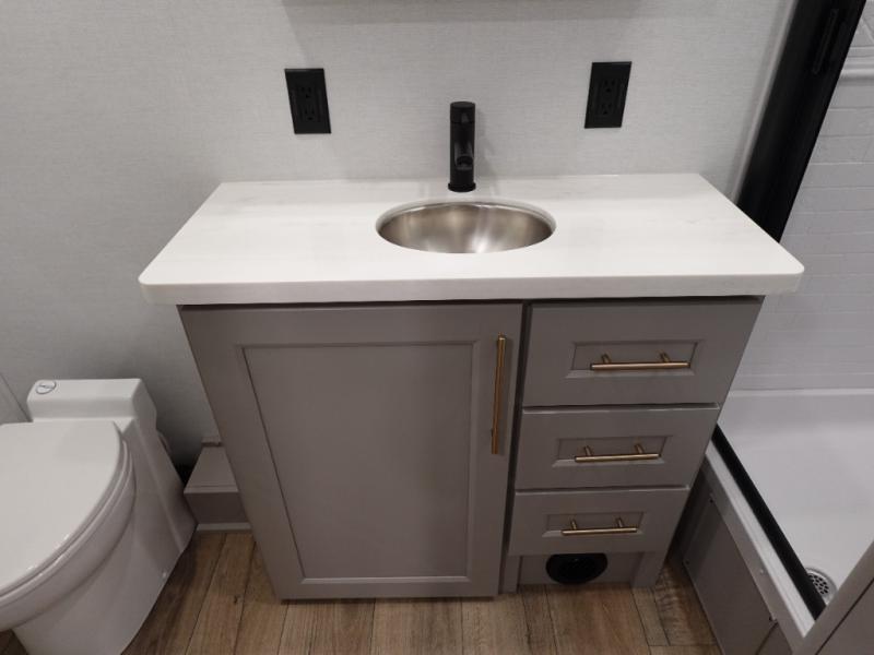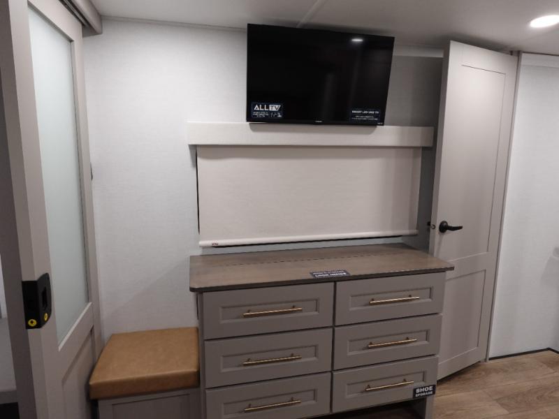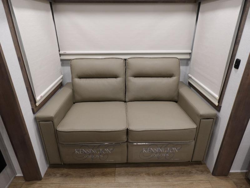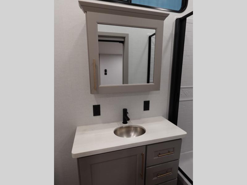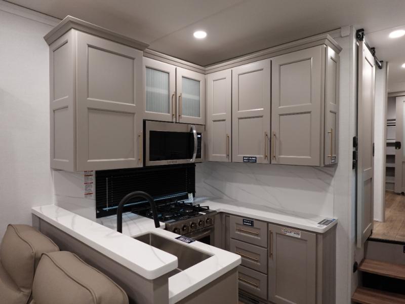 The Paradigm fifth wheels by Alliance RV are functional, high-quality, and luxurious for an unforgettable camping experience. There are three A/C units and a 40K BTU furnace to keep you comfortable year around, and you'll appreciate additional convenient amenities, like the all-in-one enclosed/heated utility center and the color coded and numbered wiring. A Rota-Flex pin box comes standard for hassle-free towing, along with Super-G 4,400 lb. rated tires and Dexter 7,000 lb. axles. You'll love the kitchen with its LG solid surface countertops and Lusso range, plus there is LED motion lighting in the pantry and a Maxx fan with a rain sensor to keep everything fresh when making dinner. Each model also includes an HD Smart TV in the living room and bedroom, plus a Winegard Air 360 antenna to keep you connected to the outside world.