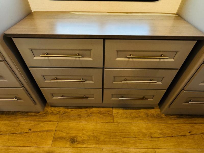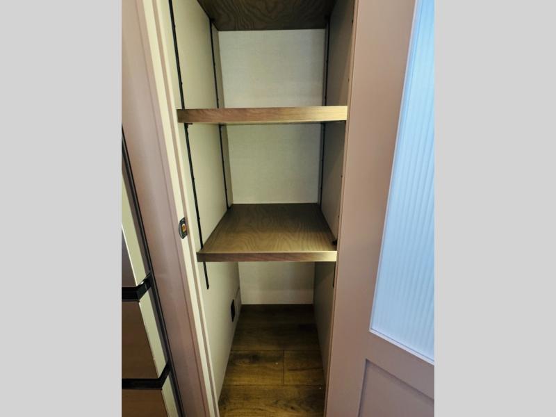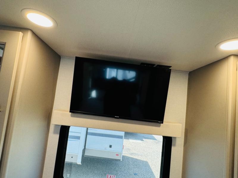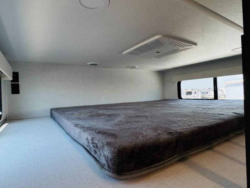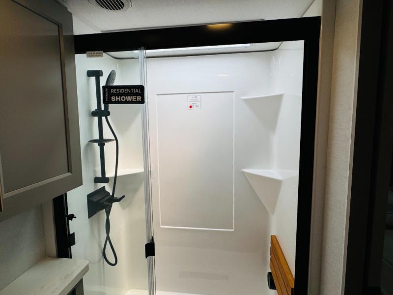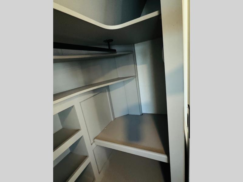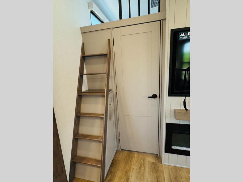 A spacious unit with sleeping for eight with plenty of choices to suit everyone! There is a front private bedroom with a king size bed that offers a large full front closet that has also been prepped for a washer and dryer if you choose that option. The front bath features a 40" x 30" shower and dual entry. Head down to the kitchen and living space at the bottom of the stairs to find a curbside slide that houses the 19 cu. ft. residential refrigerator, a pantry, and a swivel table and desk. As you continue on toward the rear of this coach, you will find a spacious living area along the roadside with a 50" Smart TV and a fireplace, a sofa sleeper slide, and a dual reclining loveseat. This makes a great gathering place for television watching, game playing, and even added sleeping space if needed at night. The rear private bedroom with its own private bath features a queen bed, two closets, and a Smart TV as well. The multipurpose loft area above can be accessed just before this rear bedroom entry by a ladder, and it is perfect for extra storage, or it can be used for added sleeping that the kiddos are sure to love.