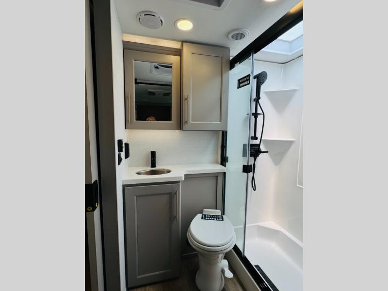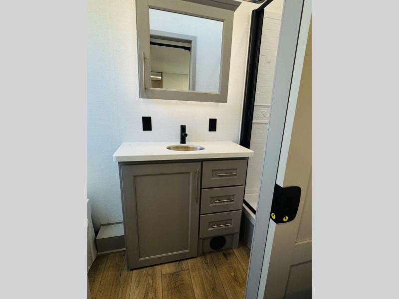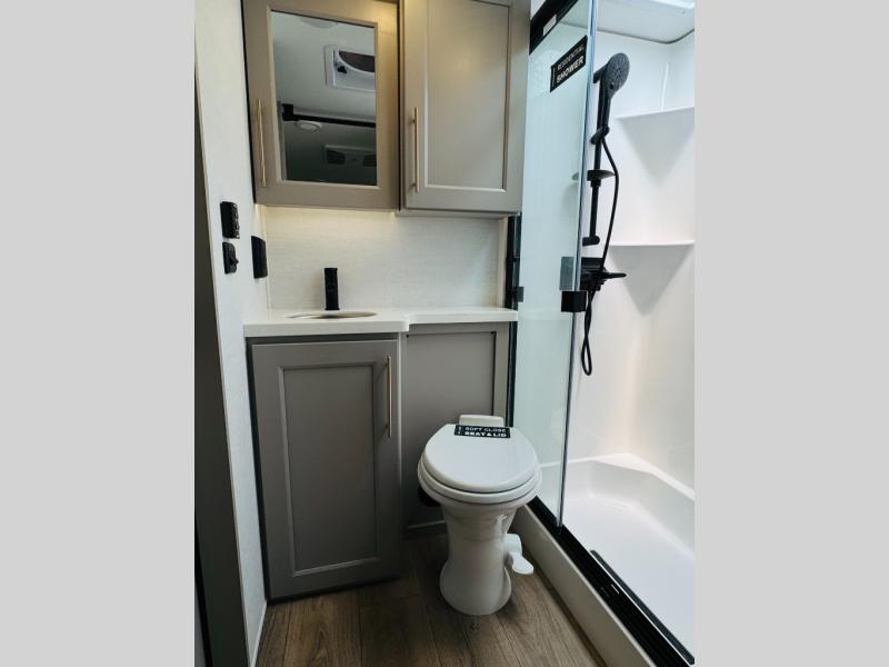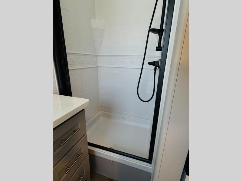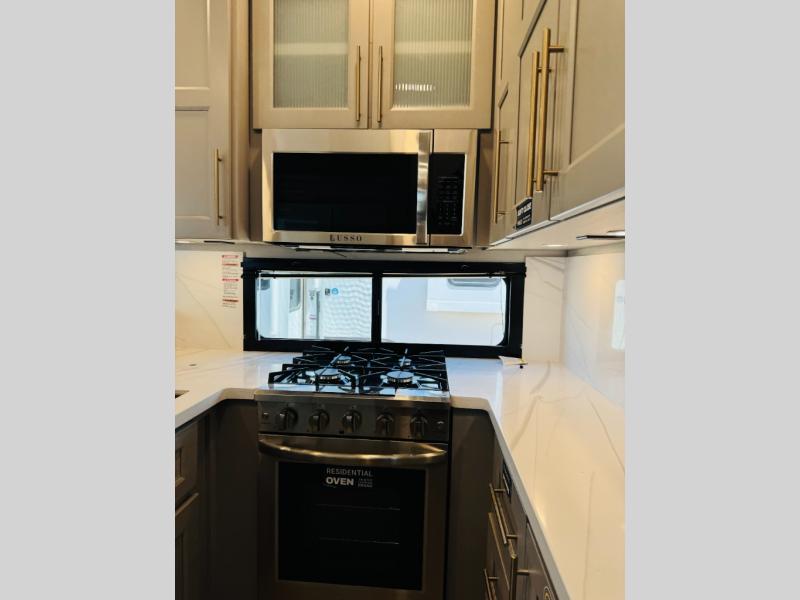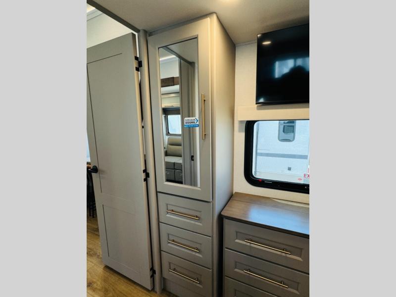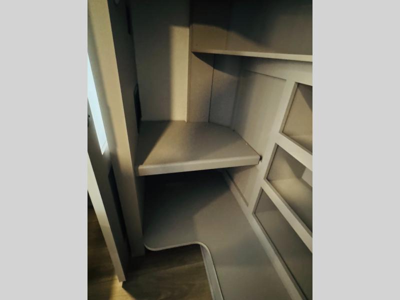 A spacious unit with sleeping for eight with plenty of choices to suit everyone! There is a front private bedroom with a king size bed that offers a large full front closet that has also been prepped for a washer and dryer if you choose that option. The front bath features a 40" x 30" shower and dual entry. Head down to the kitchen and living space at the bottom of the stairs to find a curbside slide that houses the 19 cu. ft. residential refrigerator, a pantry, and a swivel table and desk. As you continue on toward the rear of this coach, you will find a spacious living area along the roadside with a 50" Smart TV and a fireplace, a sofa sleeper slide, and a dual reclining loveseat. This makes a great gathering place for television watching, game playing, and even added sleeping space if needed at night. The rear private bedroom with its own private bath features a queen bed, two closets, and a Smart TV as well. The multipurpose loft area above can be accessed just before this rear bedroom entry by a ladder, and it is perfect for extra storage, or it can be used for added sleeping that the kiddos are sure to love.