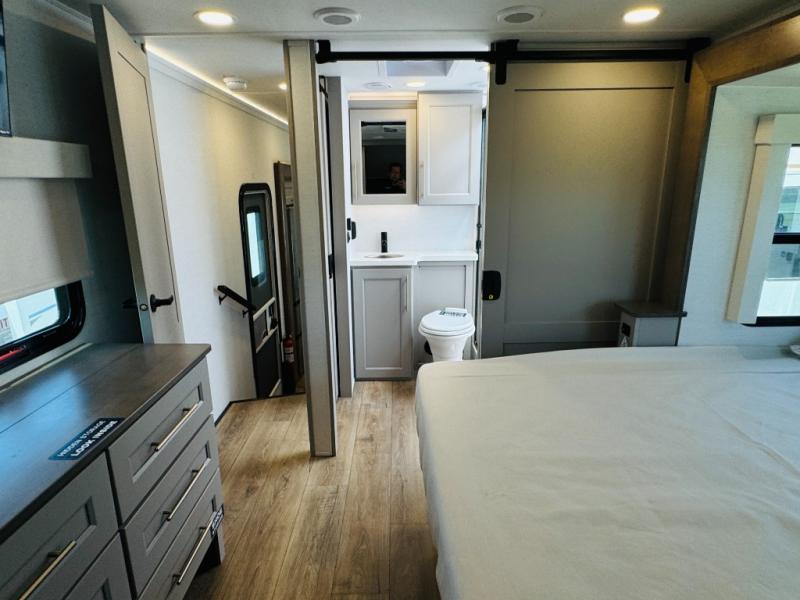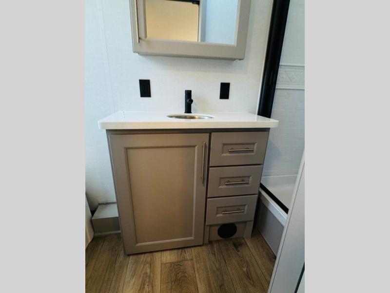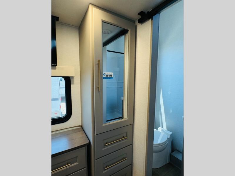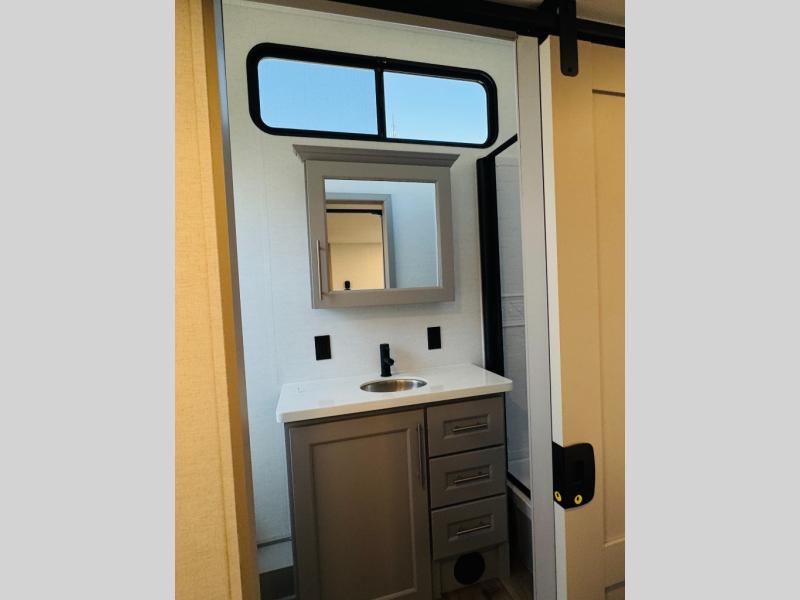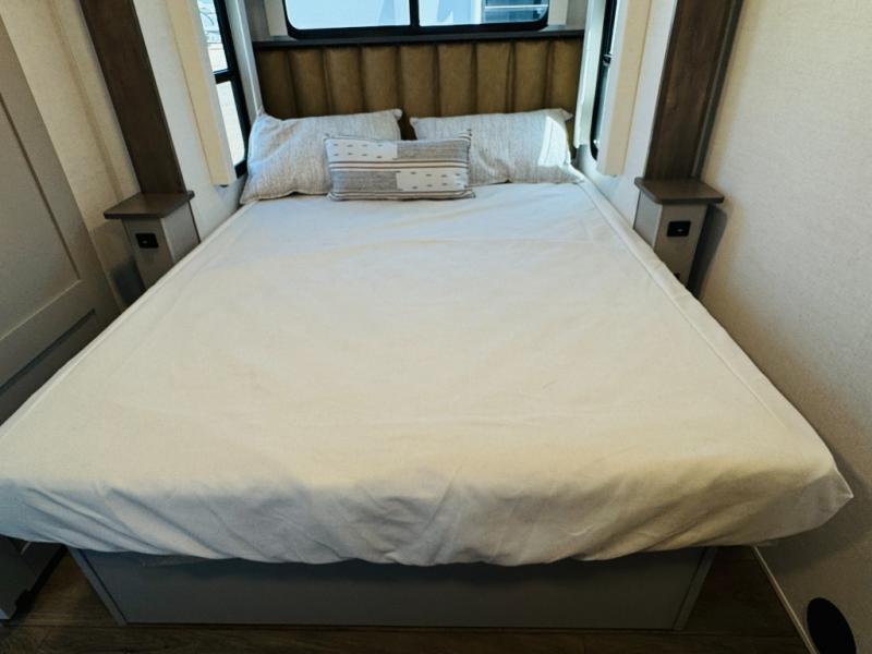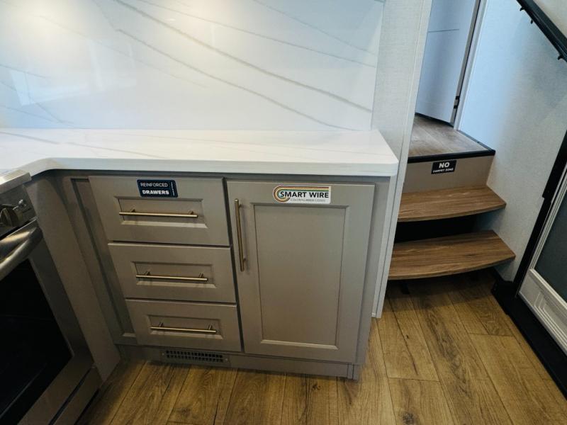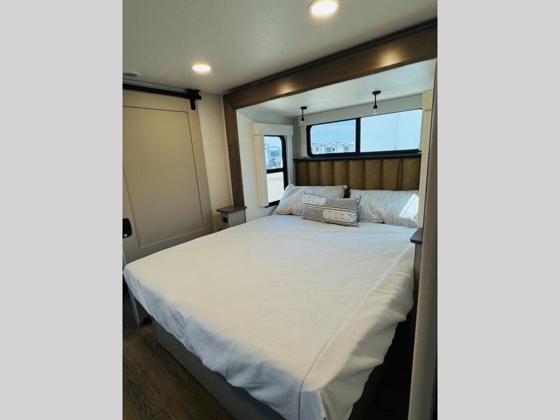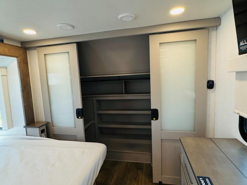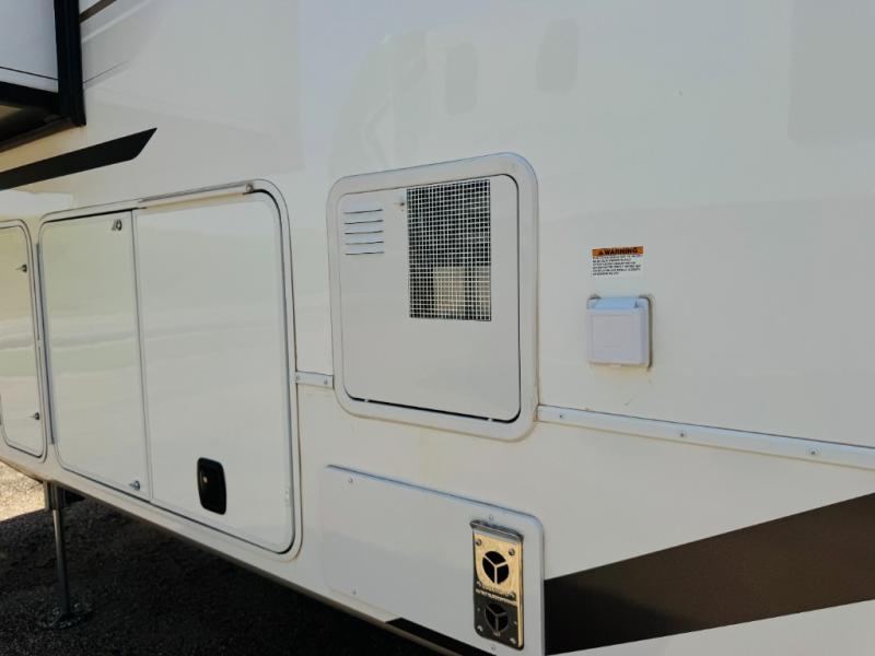 The Paradigm fifth wheels by Alliance RV are functional, high-quality, and luxurious for an unforgettable camping experience. There are three A/C units and a 40K BTU furnace to keep you comfortable year around, and you'll appreciate additional convenient amenities, like the all-in-one enclosed/heated utility center and the color coded and numbered wiring. A Helux Series coil spring pin box comes standard for hassle-free towing, along with Super-G 4,400 lb. rated tires and Dexter 7,000 lb. axles. You'll love the kitchen with its LG solid surface countertops and Lusso range, plus there is LED motion lighting in the pantry and a Maxx fan with a rain sensor to keep everything fresh when making dinner. Each model also includes an HD Smart TV in the living room and bedroom, plus a Winegard Air 360 antenna to keep you connected to the outside world. And of course there are a variety of options you can choose from to further customize your fifth wheel; dual pane windows, Super Solar Plus, slide out awning toppers, and generator prep or a generator to name a few!