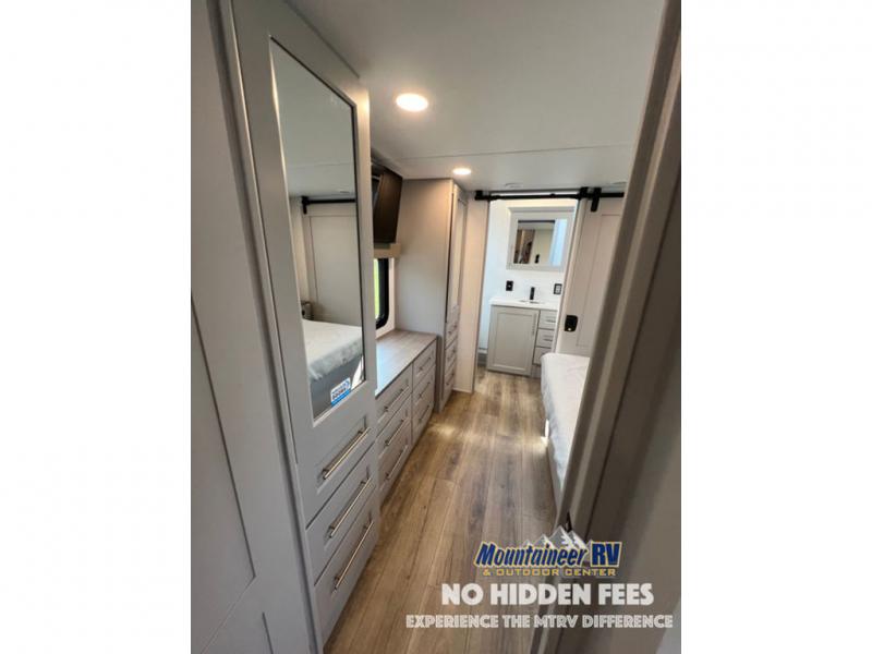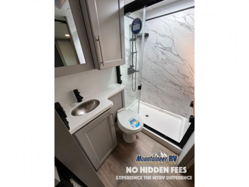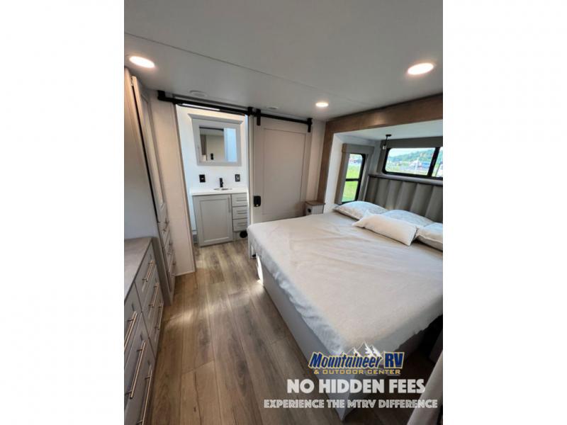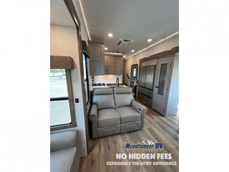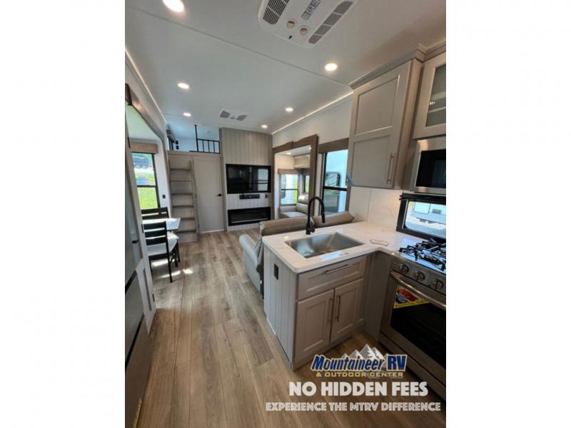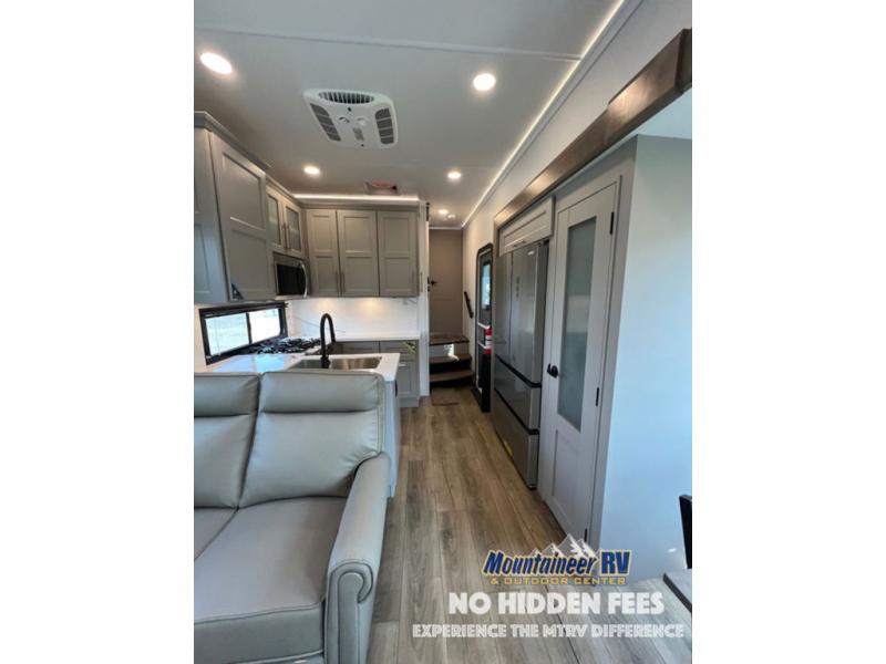 The Paradigm fifth wheels by Alliance RV are functional, high-quality, and luxurious for an unforgettable camping experience. There are three A/C units and a 40K BTU furnace to keep you comfortable year around, and you'll appreciate additional convenient amenities, like the all-in-one enclosed/heated utility center and the color coded and numbered wiring. A Helux Series coil spring pin box comes standard for hassle-free towing, along with Super-G 4,400 lb. rated tires and Dexter 7,000 lb. axles. You'll love the kitchen with its LG solid surface countertops and Lusso range, plus there is LED motion lighting in the pantry and a Maxx fan with a rain sensor to keep everything fresh when making dinner. Each model also includes an HD Smart TV in the living room and bedroom, plus a Winegard Air 360 antenna to keep you connected to the outside world. And of course there are a variety of options you can choose from to further customize your fifth wheel; dual pane windows, Super Solar Plus, slide out awning toppers, and generator prep or a generator to name a few!