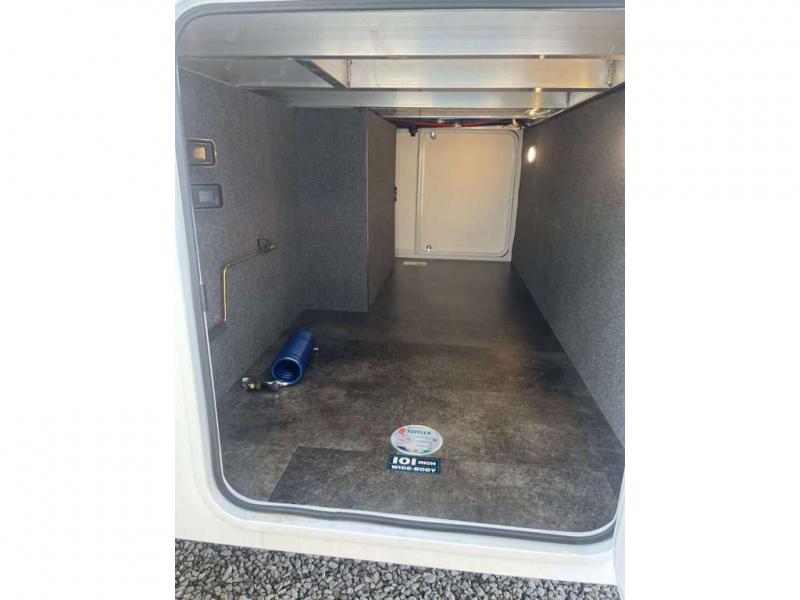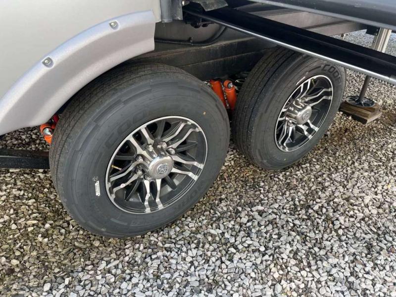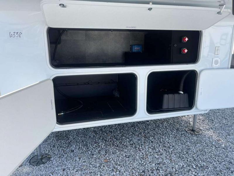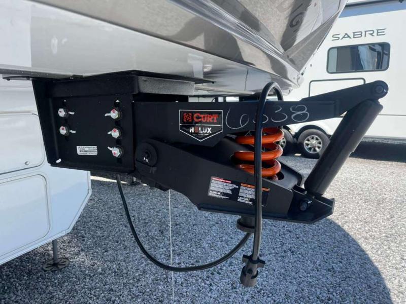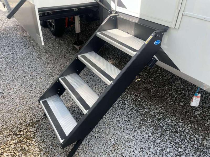 Curt 8k Touring Coil Spring Suspension, Anti-Lock Brakes, Helux Pinbox, 17.5 H-Rated Cooper Tires, 101" Wide-Body Benchmark Chassis Platform w/ Flush Floor Upper Deck, 6-Point Hydraulic Leveling, 2" Rear Accessory Hitch, Solid Quad Entry Steps, Safe-T-Rail Telescoping Hand Rail, Space Enhancing Drop Frame Pass-Through Storage Compartment