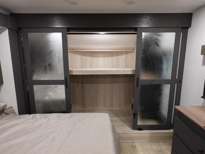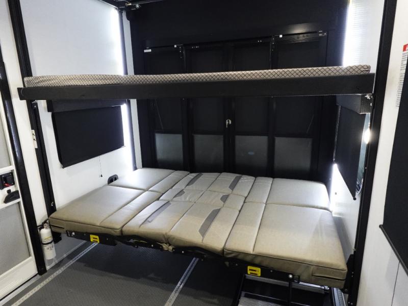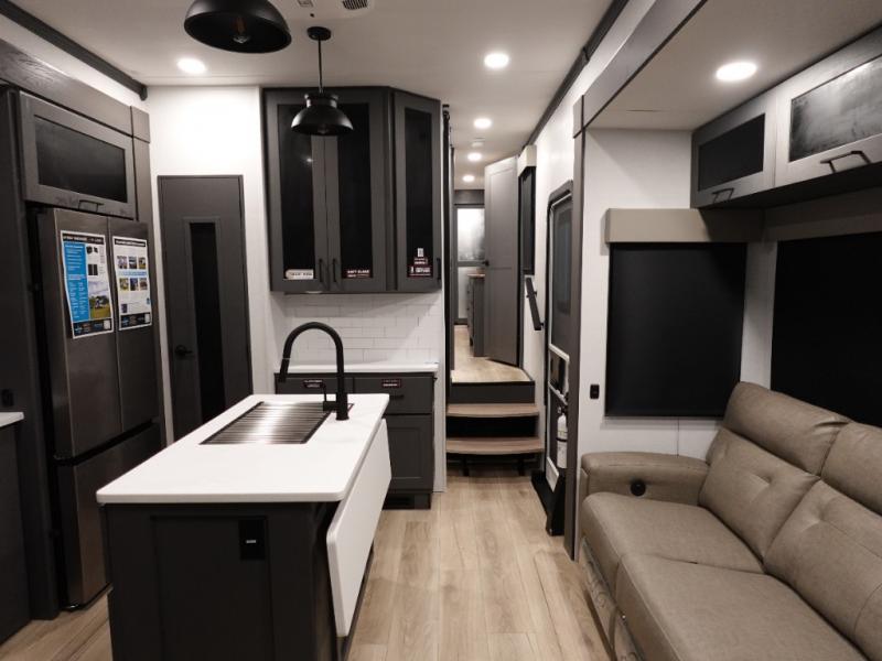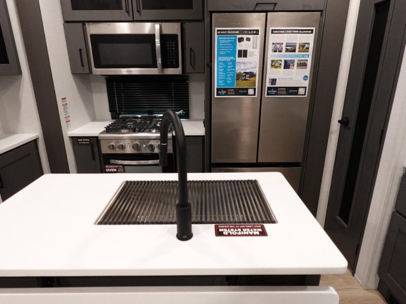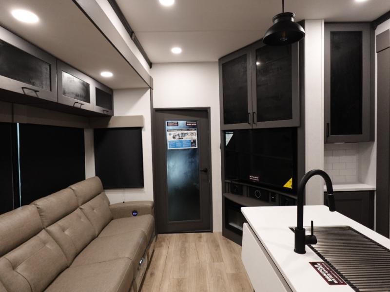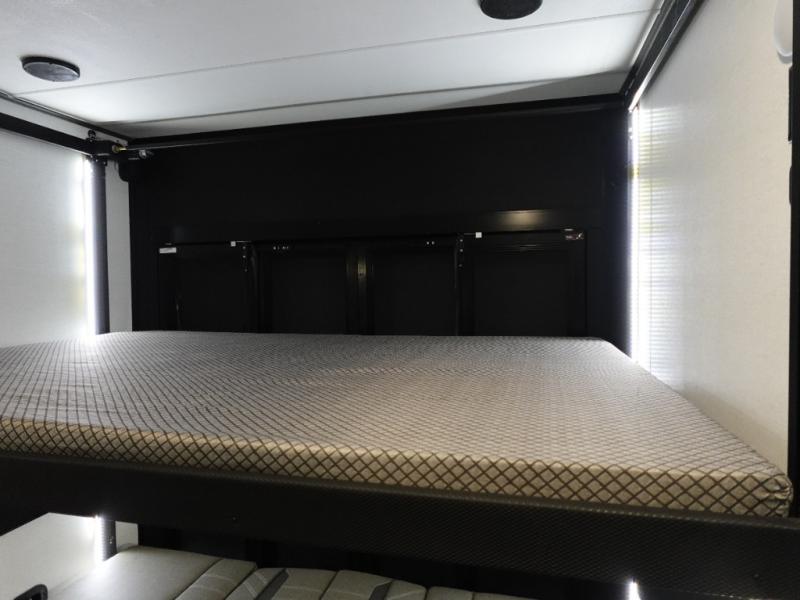You can bring your toys with you wherever you go with any one of these Alliance RV Valor toy hauler fifth wheels! They are adventure-ready with a quality build from the walk on roof with seamless PVC roof covering to the commercial grade vinyl flooring and MorRyde CRE3000 suspension system. The Performance Running Gear package comes with a 101" wide-body benchmark chassis platform, 7,000 lb. Dexter axles, and a space enhancing drop frame storage compartment to pack in all your riding gear. You can even go off-gridding thanks to the Off the Grid Pack that has two 400 watt solar panels, generator prep, a 40 amp charge controller, and a 100 amp hour lithium iron phosphate battery. Some of the interior comforts you will enjoy are the hardwood cabinet doors and drawers, solid surface kitchen countertops, and commercial grade vinyl flooring with no carpet to make clean up a breeze. The Valor toy haulers are also the Masters of 12 Volt with USB charging station throughout, a stainless steel refrigerator, and more 12 volt features to make camping hassle-free!