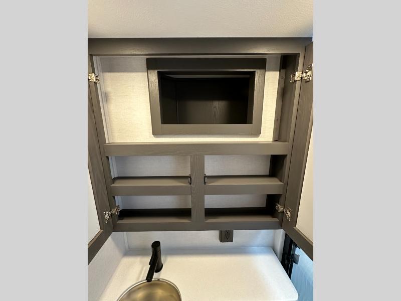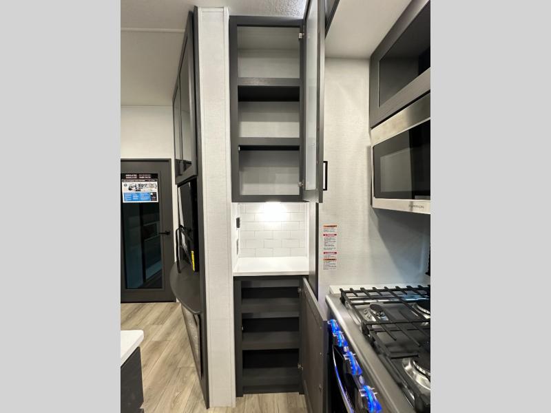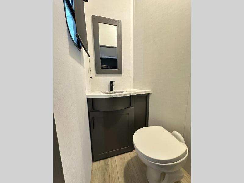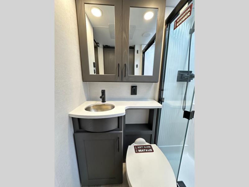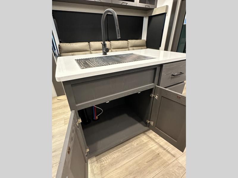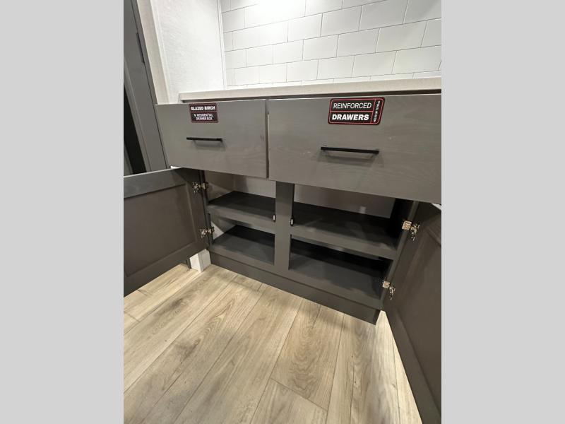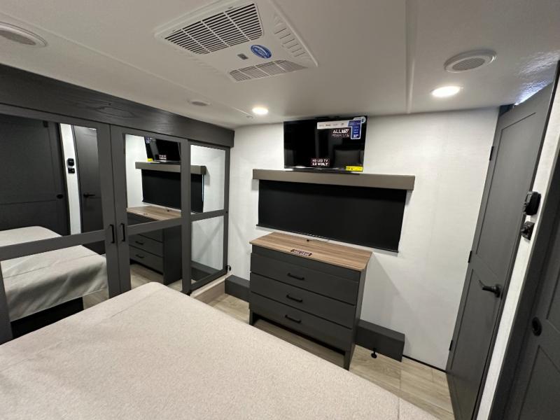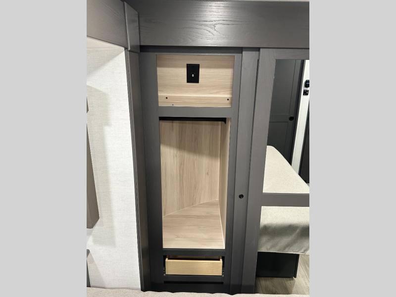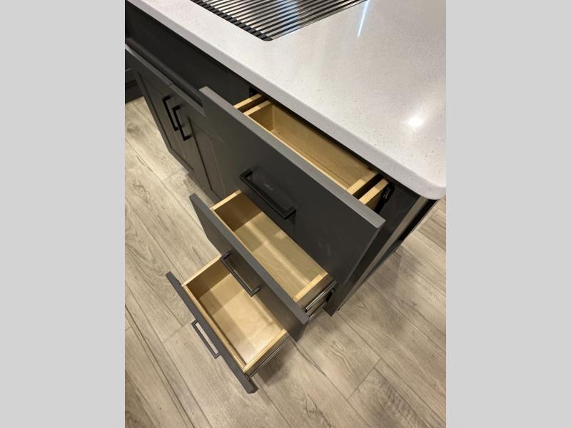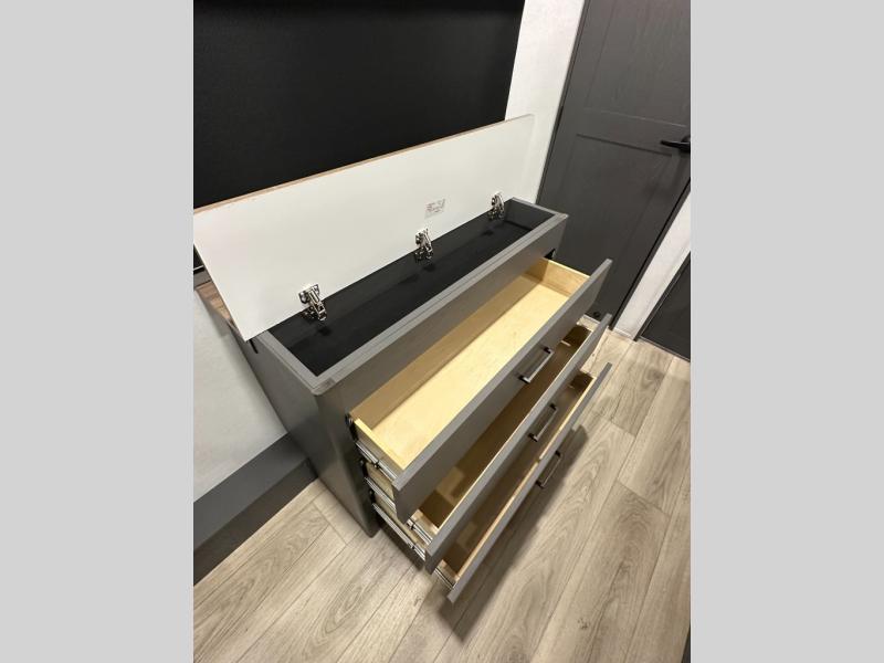 • Front private bedroom, king-bed slide (some units), flip-top dresser, front wardrobe.