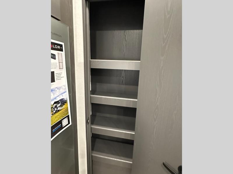 • Kitchen island, multiple hutches, pantries, stainless or 12-V refrigerator.